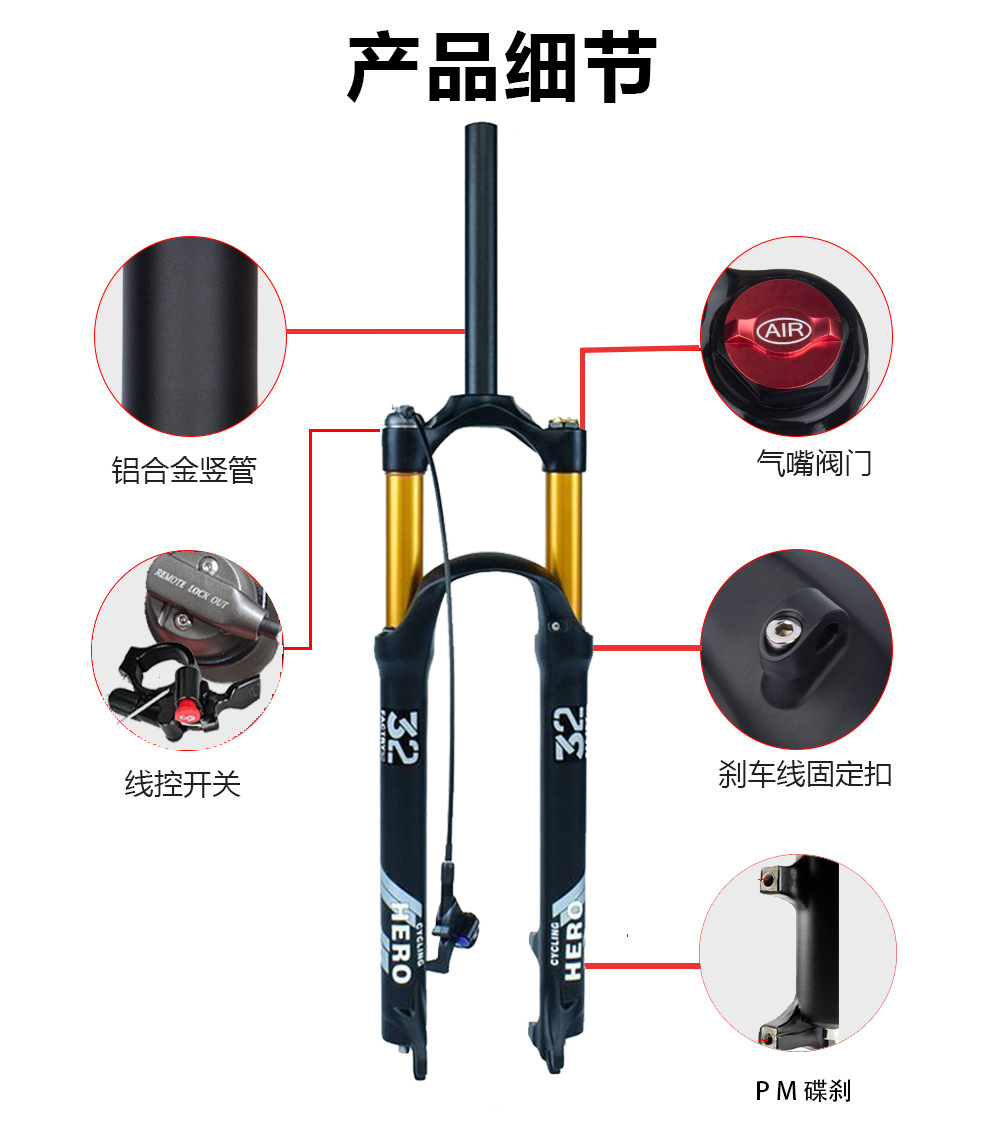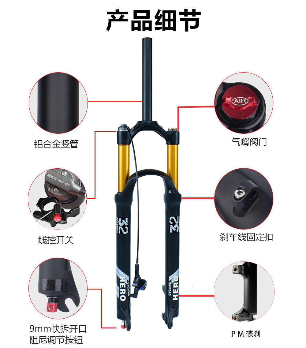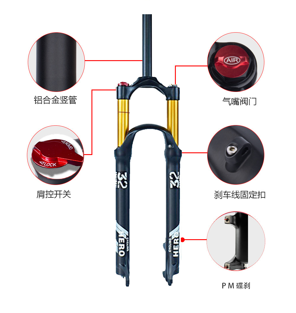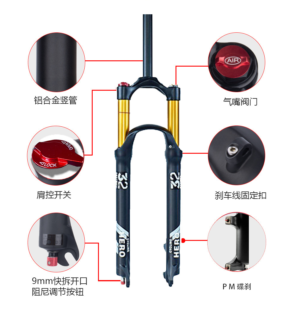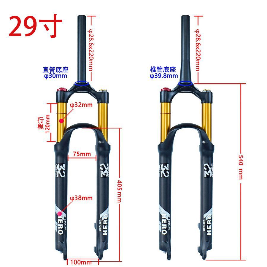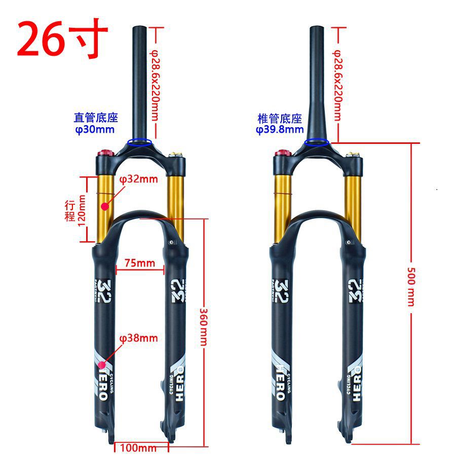 32-мм вилка для велосипеда, передняя вилка для горных и кроссовых велосипедов, воздушная вилка 26, 27.5, 29 дюймов, ход 120 мм, амортизатор