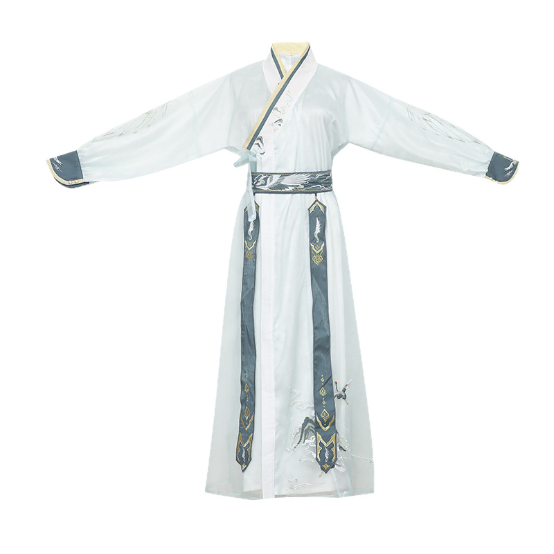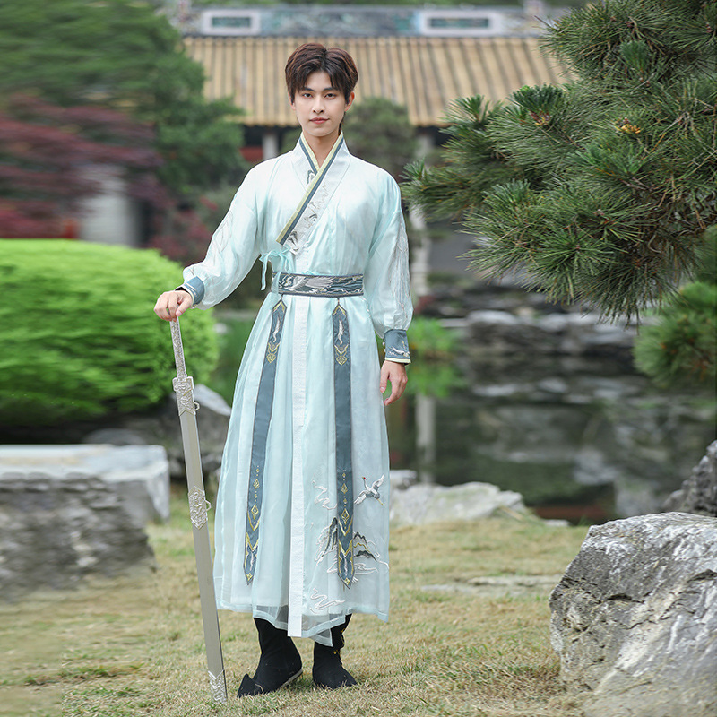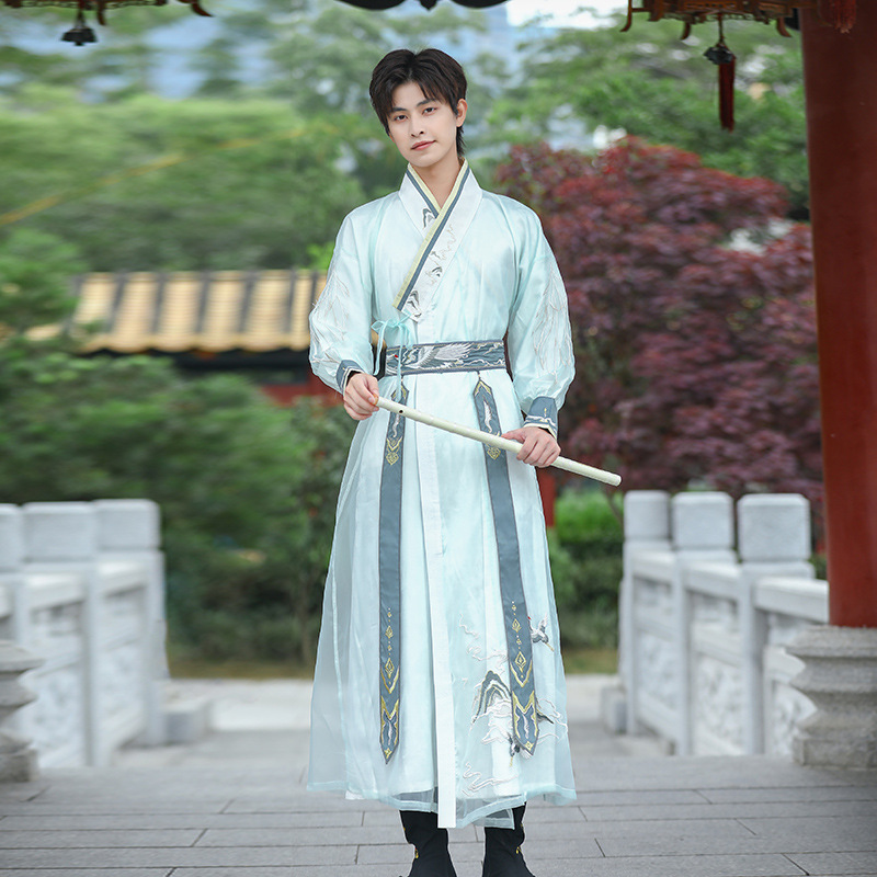 Новая летняя прямая юбка Hanfu с поясом для мужчин и женщин, повседневный элегантный комплект с краном со съемным поясом и струящейся деталью.