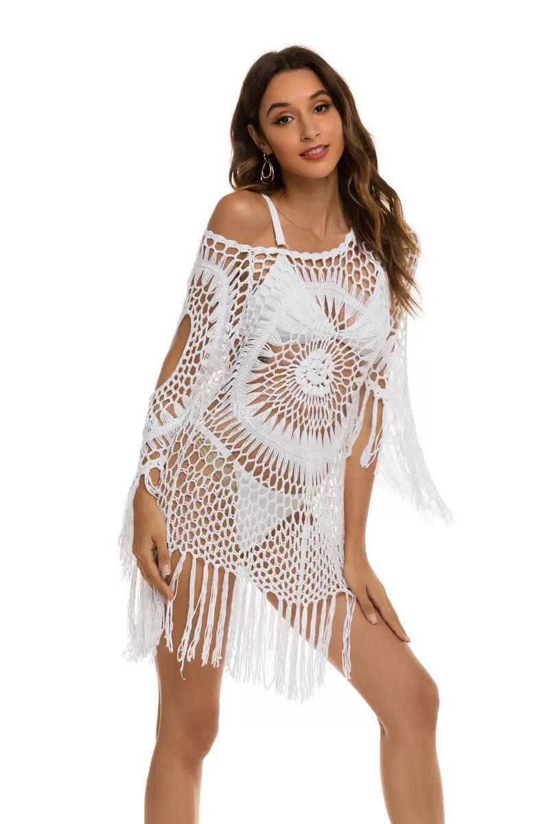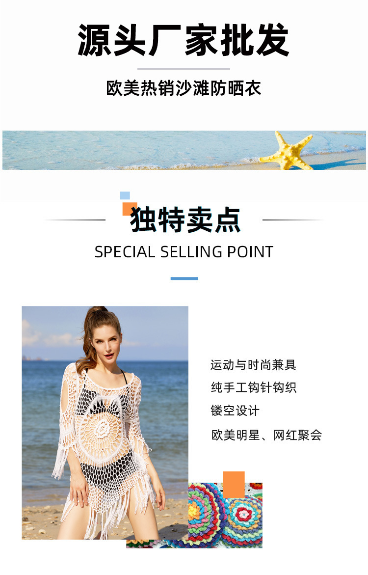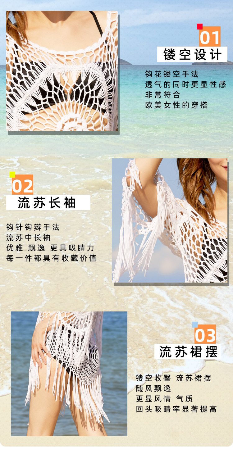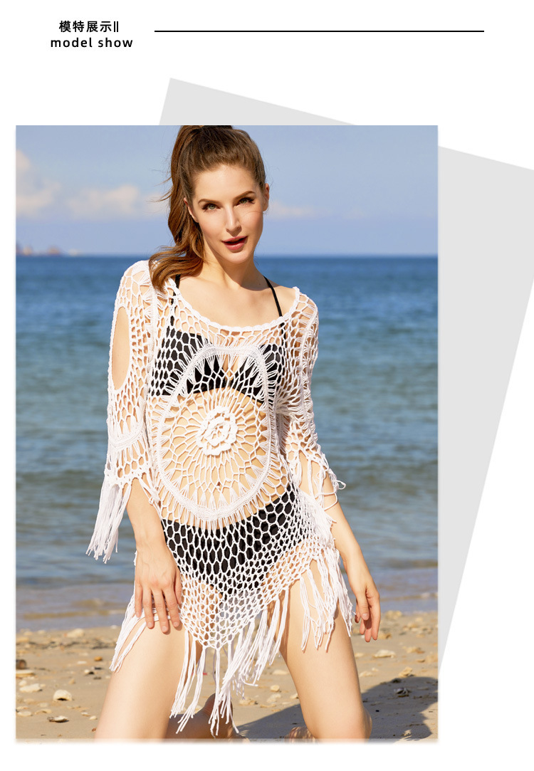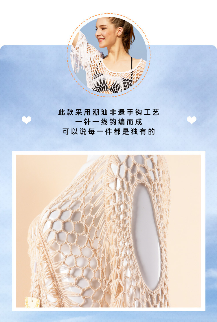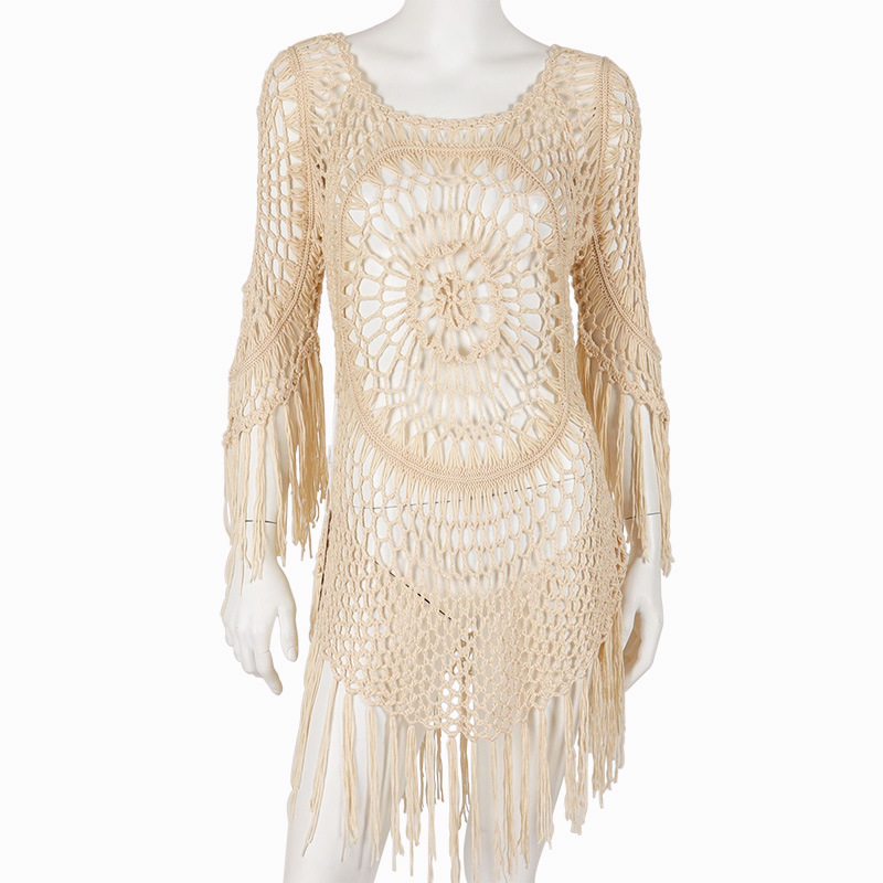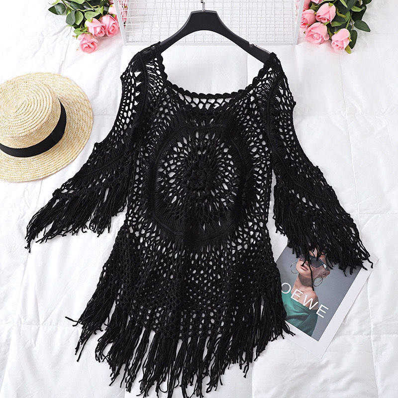 Летняя Европейская и американская вязаная крючком блузка-бикини ручной работы с полыми сексуальными кисточками, свободная пляжная внешняя трансграничная оптовая продажа