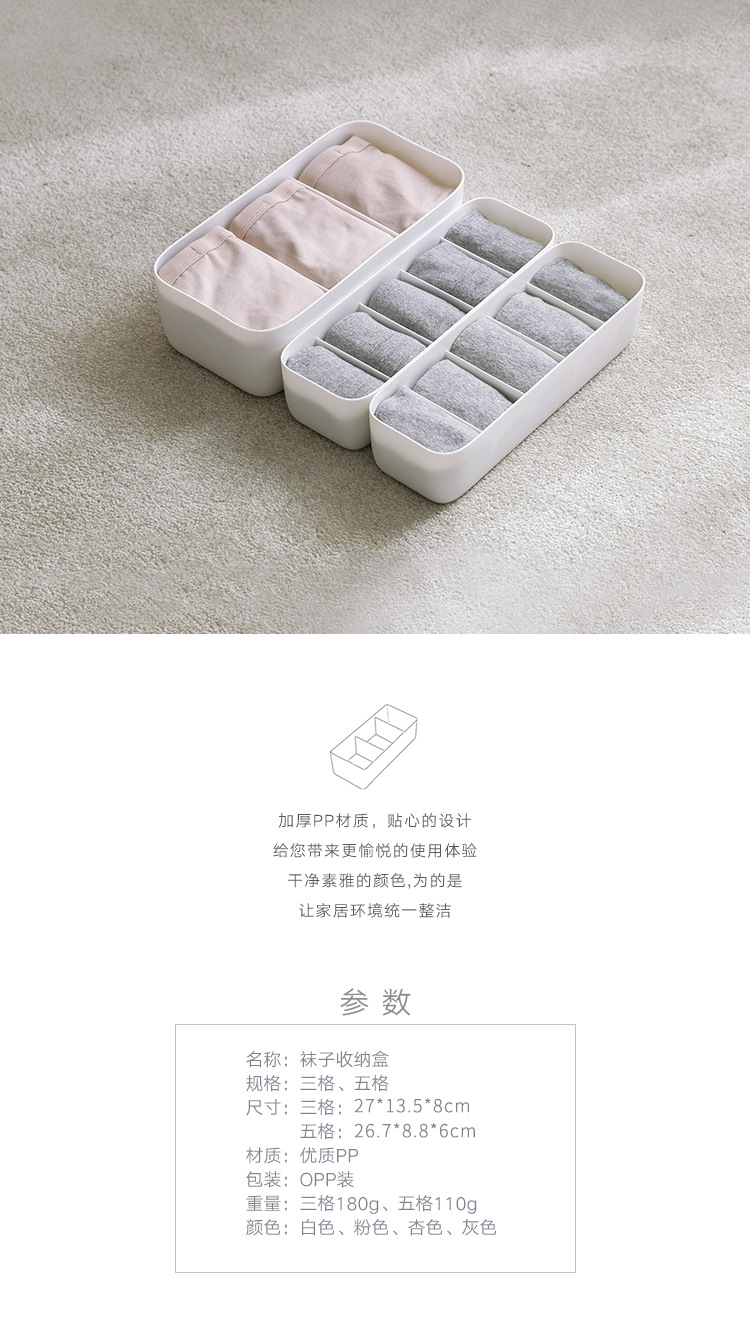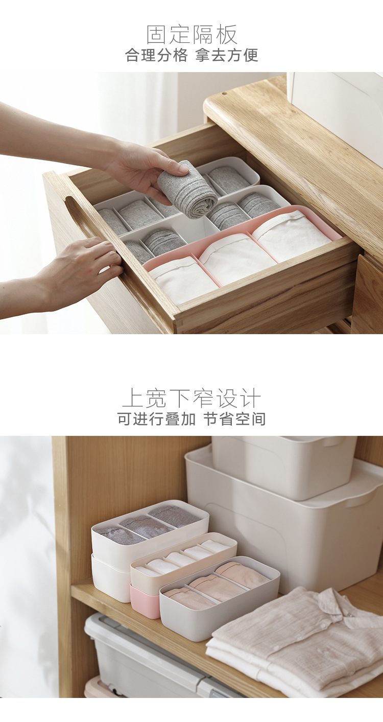 商品名称:家居素色可叠加内衣收纳盒 卧室多功能袜子整理盒 抽屉杂物分格盒