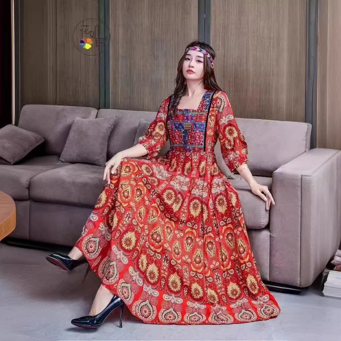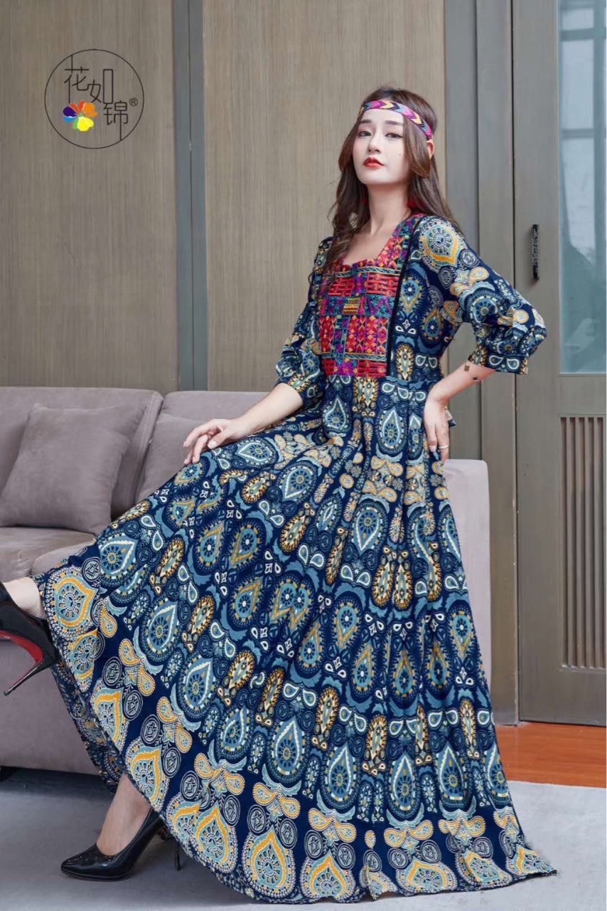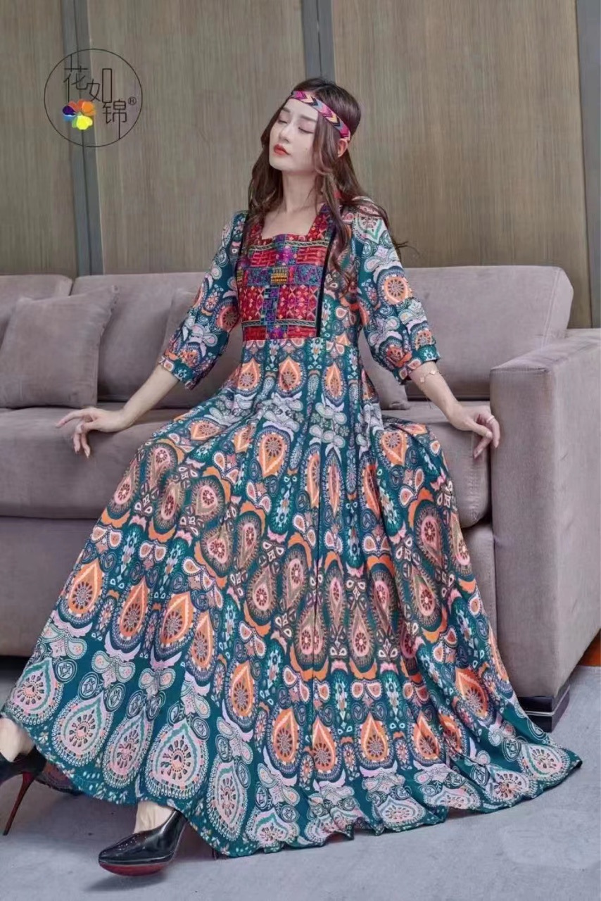 Юньнань, Синьцзян, Цинхай, туристические достопримечательности Punch-In Essential Отпуск Стиль Богемия Большой выпуск Тонкое платье