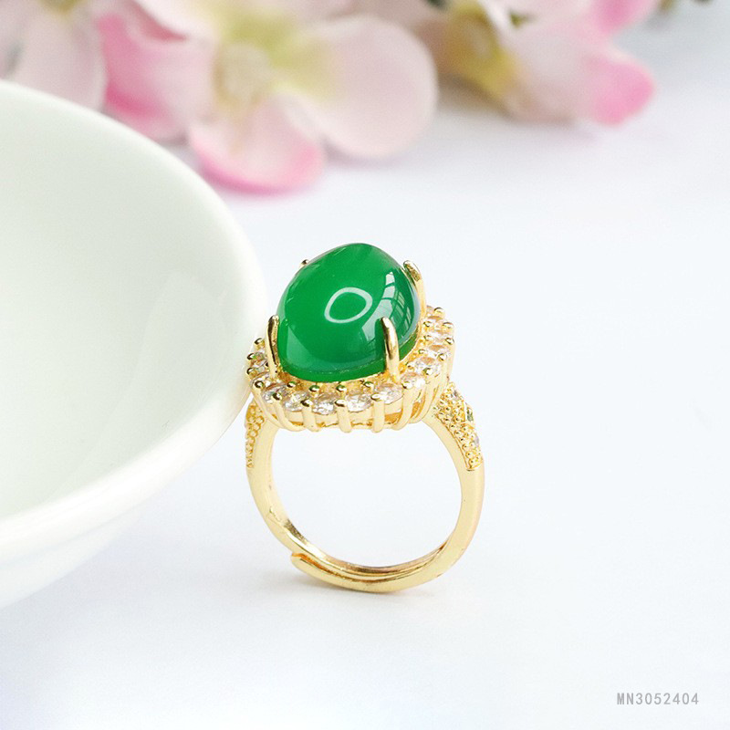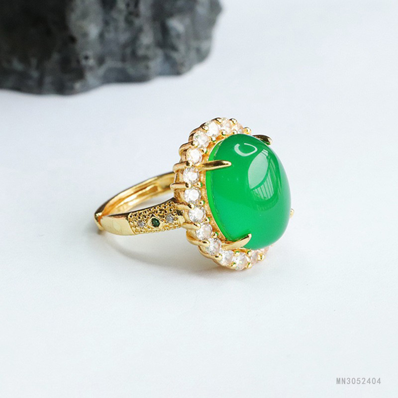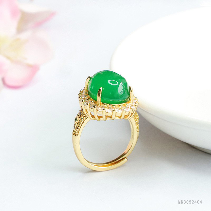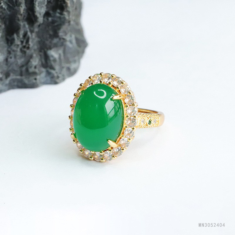 Зеленый халцедон Голубь яйцо Хао инкрустация кольцо (MN3052404)