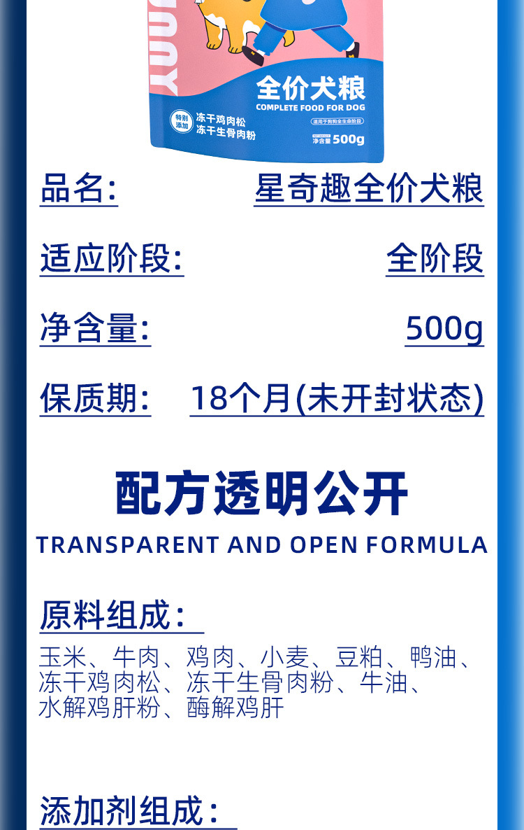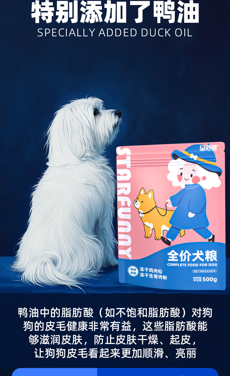 [Горячие продажи Meitan] Xingqiqu Полная цена корма для собак, утка, пробиотик 500 г для взрослых собак, щенки, корм для собак, корм для собак
