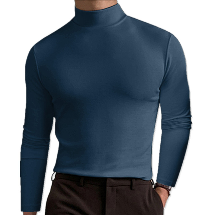 Европейская и американская мужская осенне-зимняя футболка Amazon с высоким воротником и длинным рукавом, Мужская Базовая рубашка, мужской однотонный топ