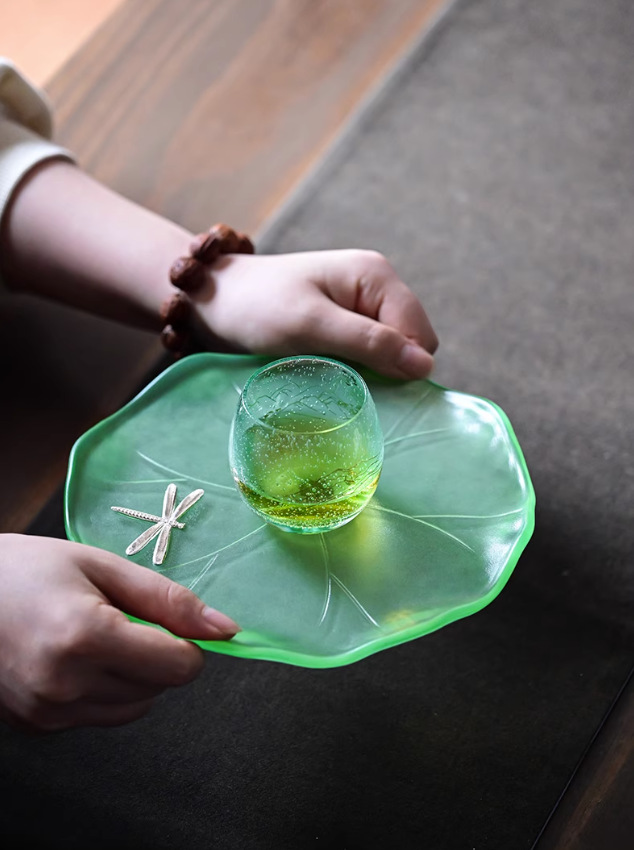 Стеклянный горшок в японском стиле с листом лотоса сухой пузырьковый стол чайная церемония из матового стекла Дзен поднос аксессуары для чайной церемонии маленький чайный поднос коврик для горшка