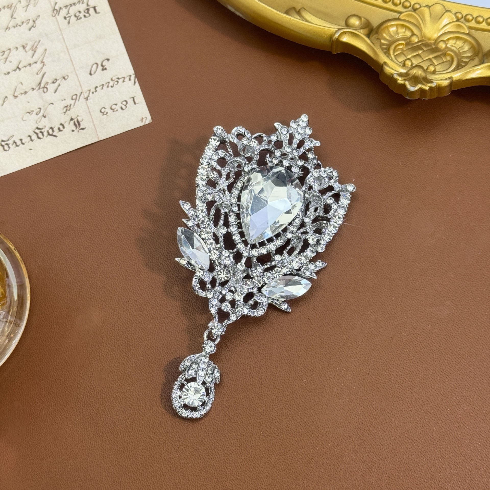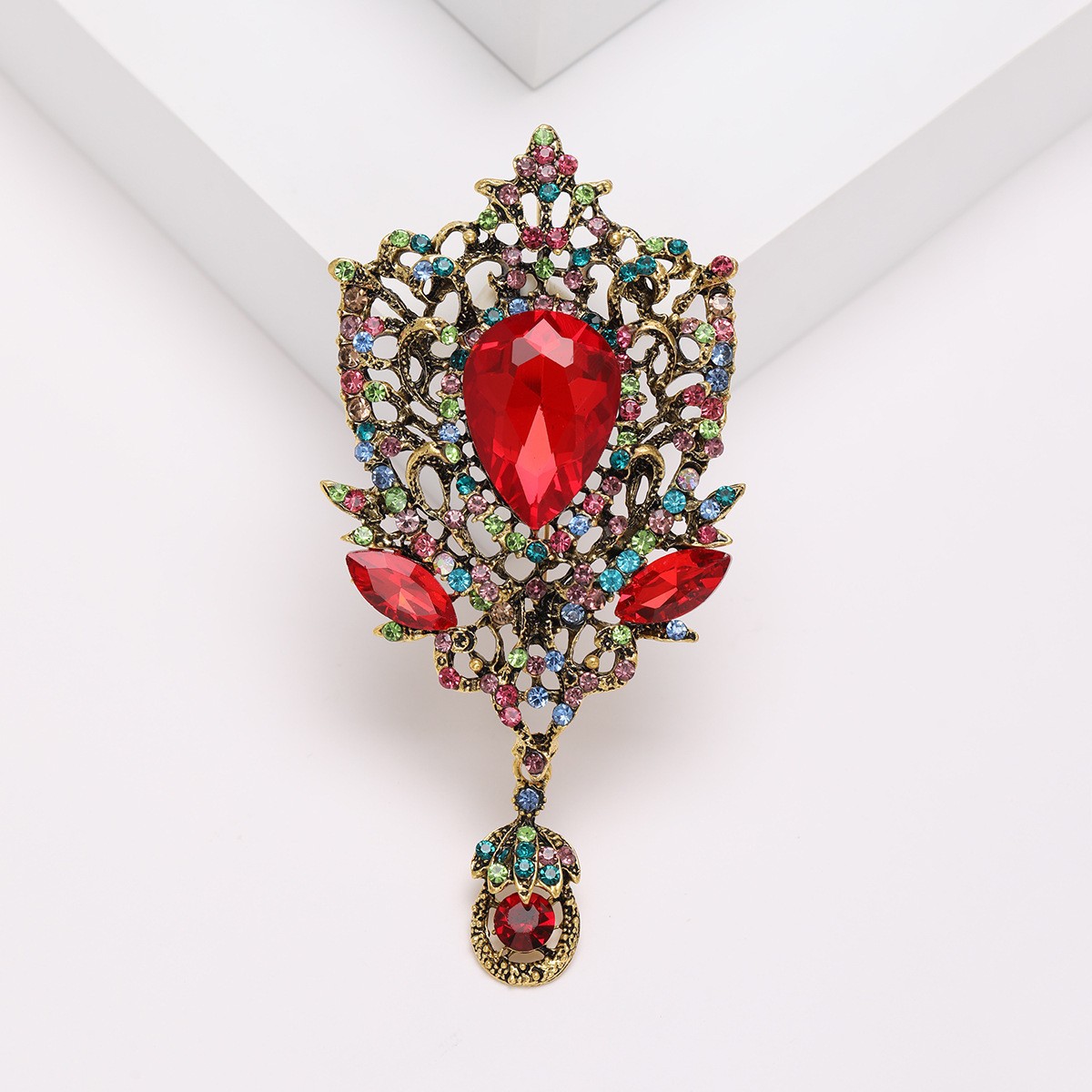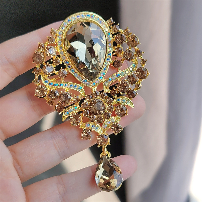 Трансграничная Европа и США Новая мода в стиле ретро Хрустальная брошь из сплава, инкрустированная стразами, булавка, цветная подвеска, корсаж, одежда
