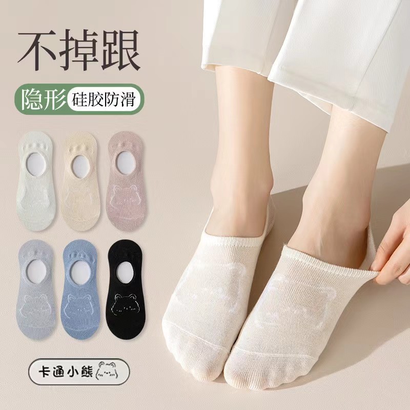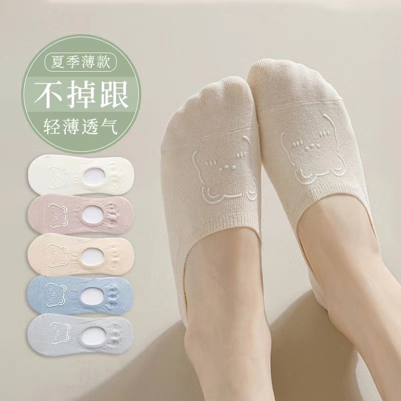 Силиконовые нескользящие носки, женские невидимые носки, весна-лето, тонкие Мультяшные летние носки с милыми мультяшными животными