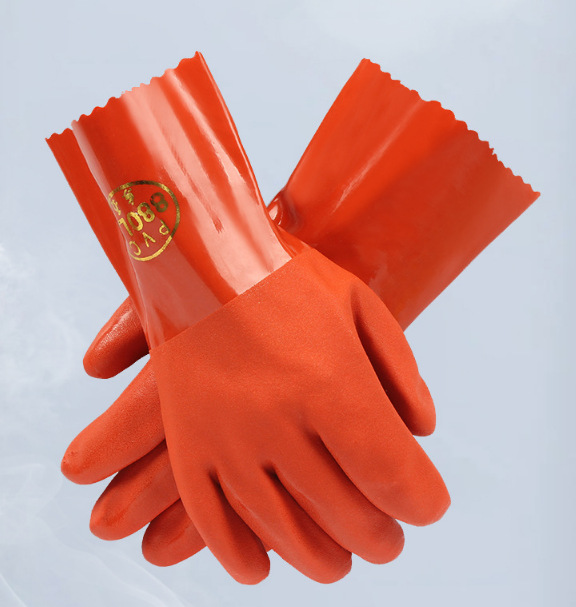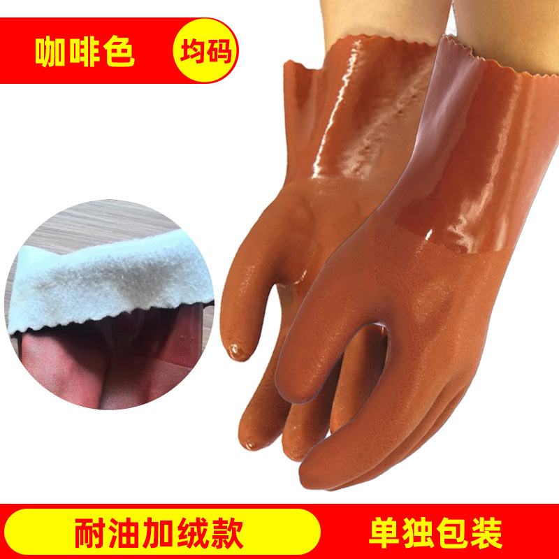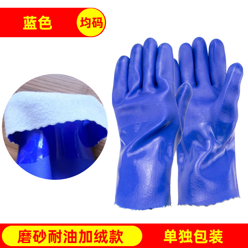 Синие маслостойкие перчатки, промышленные водонепроницаемые, кислото- и щелочестойкие, утолщенные, с пластиковым покрытием из ПВХ, матовые, на флисовой подкладке, для защиты труда, маслостойкие перчатки