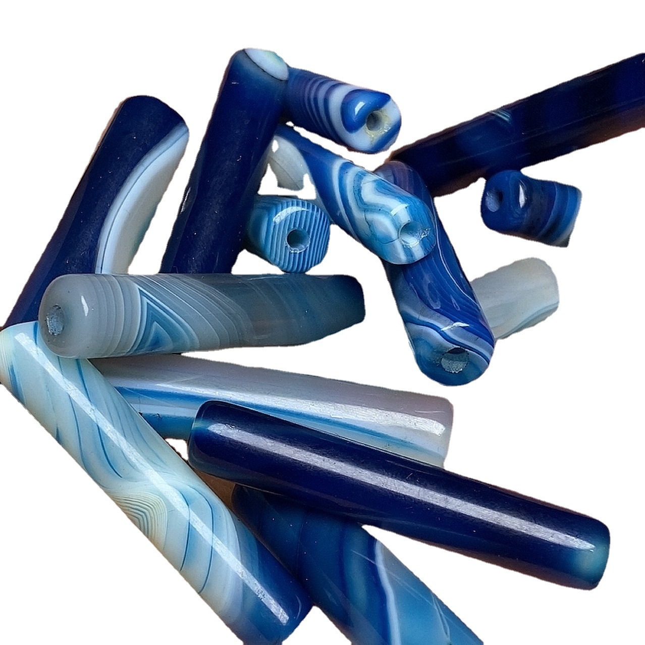 Натуральный Синий Шелковый Агат баррель бусины прямые колонки бусины кулон DIY с бусинами бусины ключицы производители оптом синий Qin