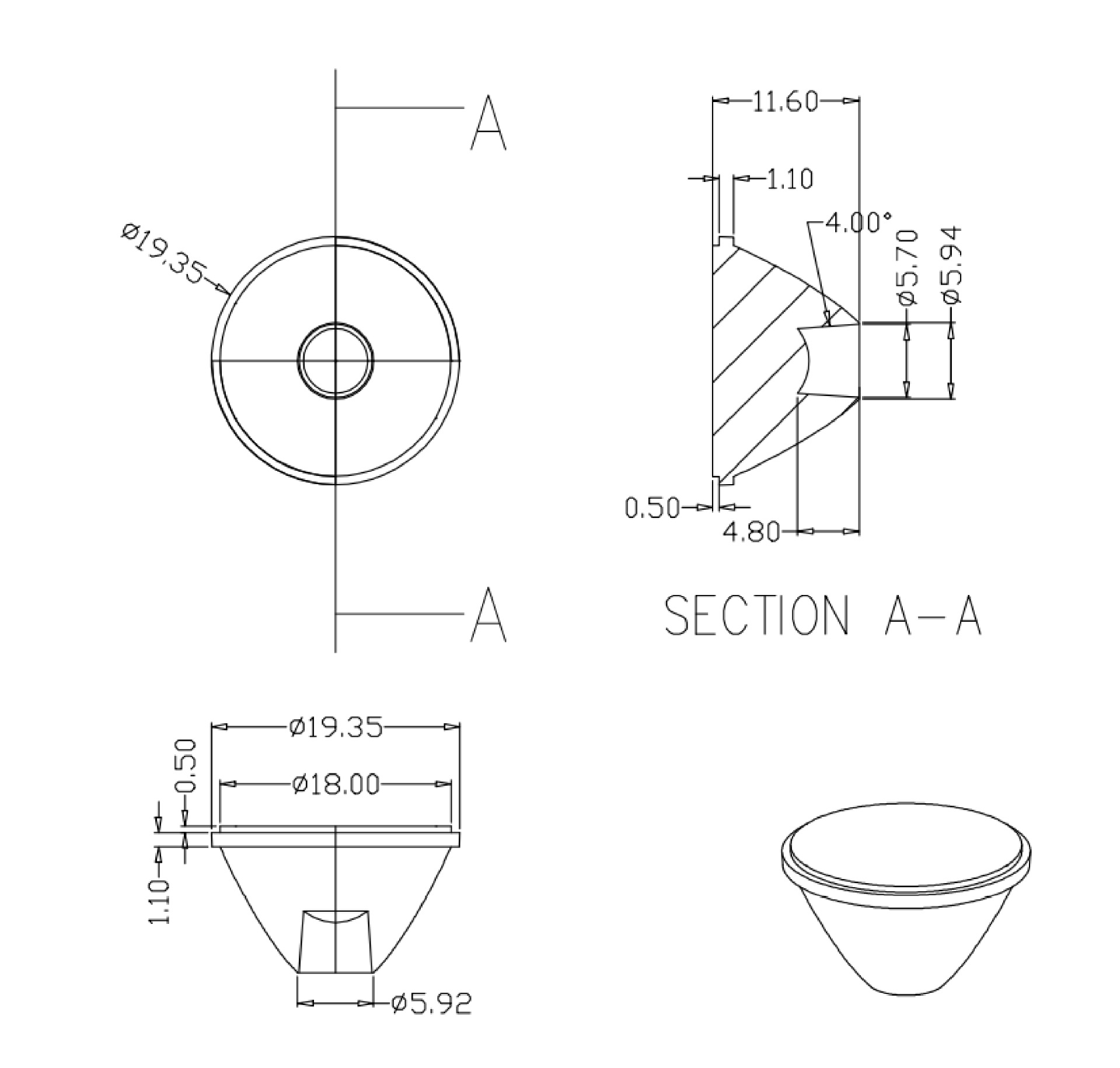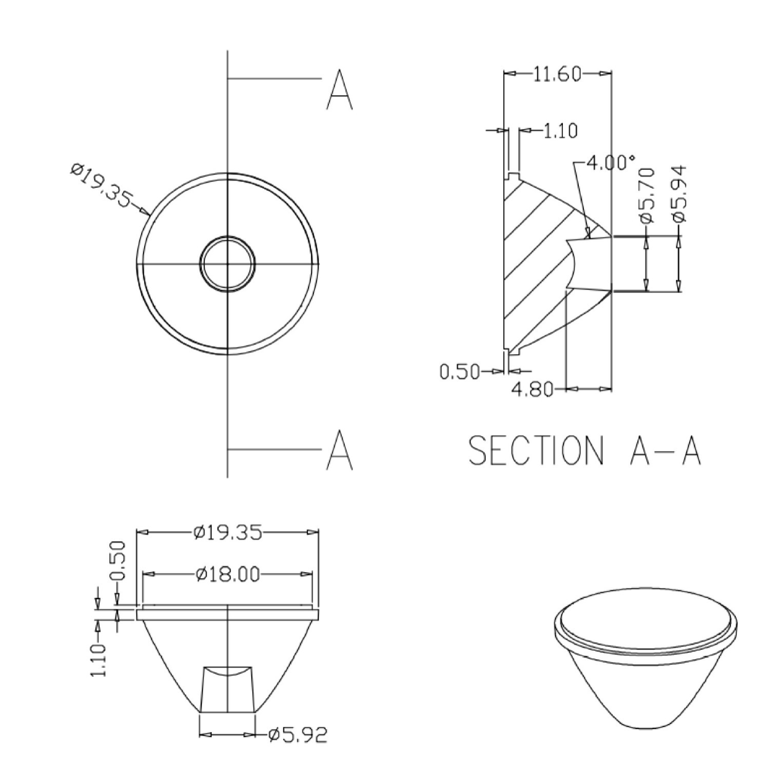 Линза 3535 диаметром 19 мм, с углом рассеивания 10 градусов, высокой яркостью, для создания эффекта звездного неба, имитация акрила, для светодиодных прожекторов.