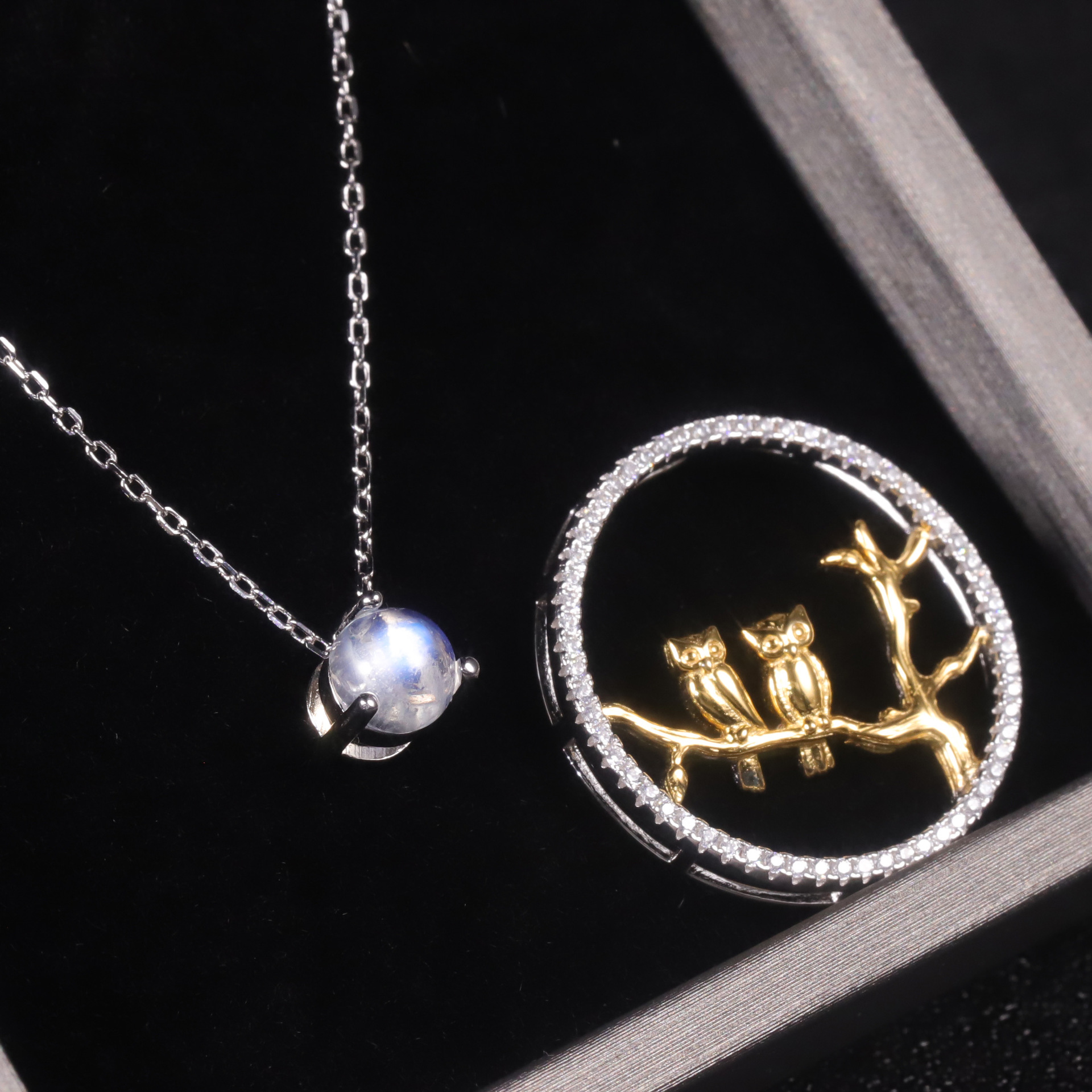 S925 стерлингового серебра инкрустированные натуральный кремовый синий лунный камень ожерелье подарок двойного назначения ниша дизайн драгоценный камень кулон