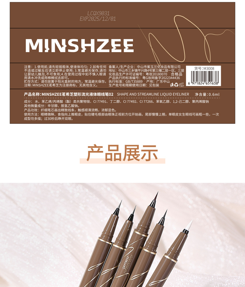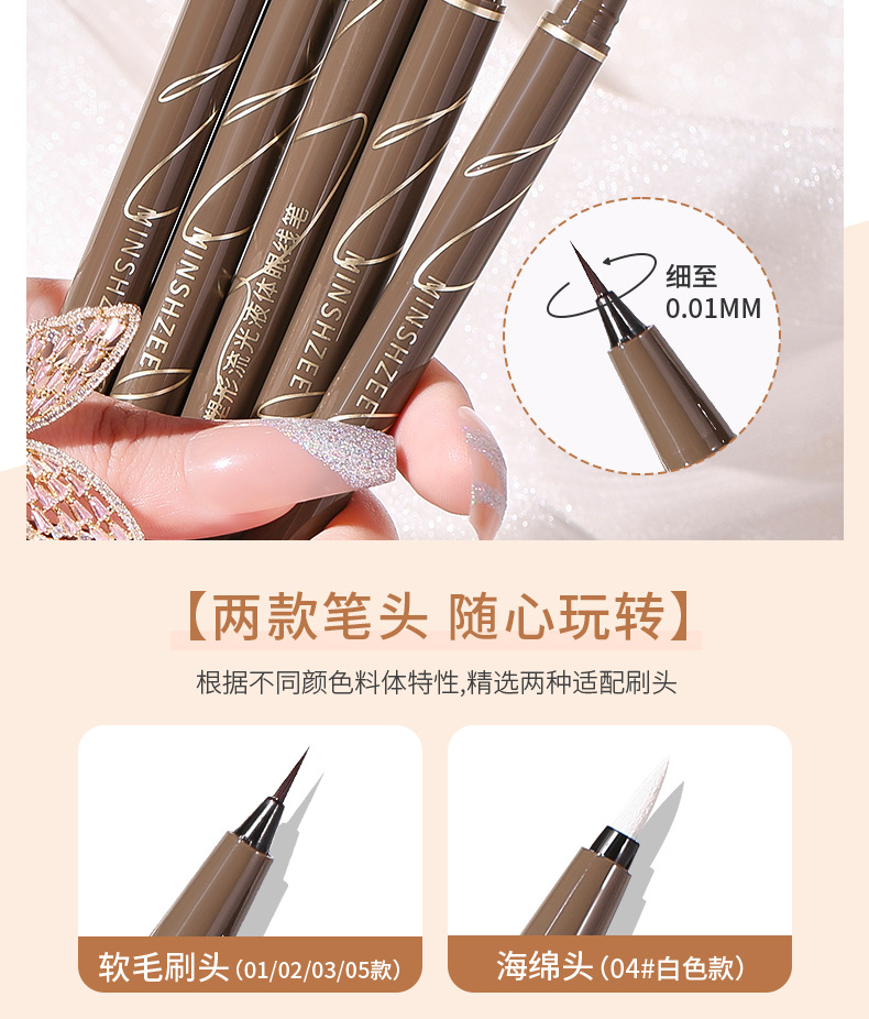 Подводка для глаз Ming Xizhi Жидкая ручка для сна Шелкопряд Чрезвычайно тонкий женский не красящий прочный водостойкий защищенный от пота новичок Коричневый белый прочный