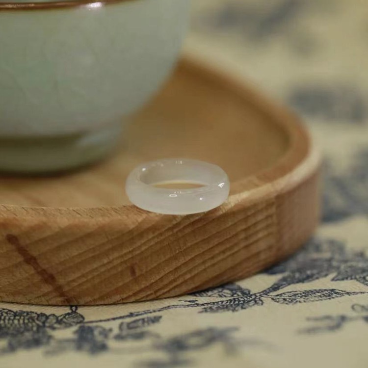 Натуральный белый ледяной агат халцедон кольцо нефрит кольцо для мужчин и женщин стиль пластина кольцо пара указательный палец простой подарок