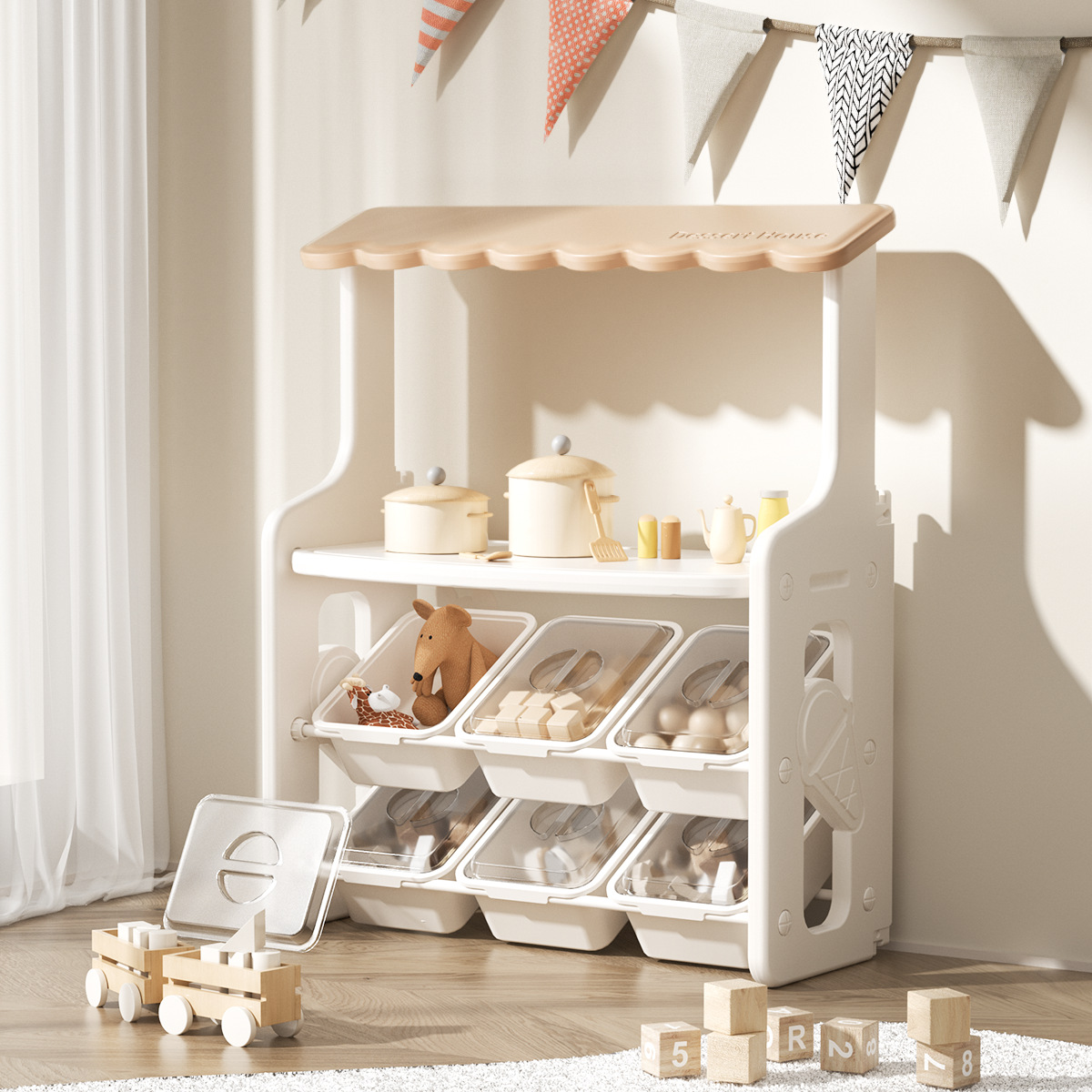 Детская многофункциональная книжная полка Полка для хранения детских игрушек Шкаф для хранения в детском саду Картинка Книжная полка
