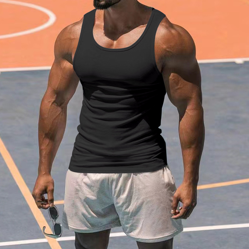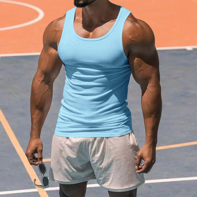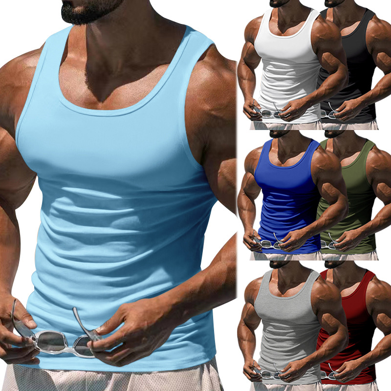 2023 Европейский и американский летний спортивный тренировочный жилет для фитнеса Amazon Cross-Border Мужской однотонный I-образный жилет для мужчин