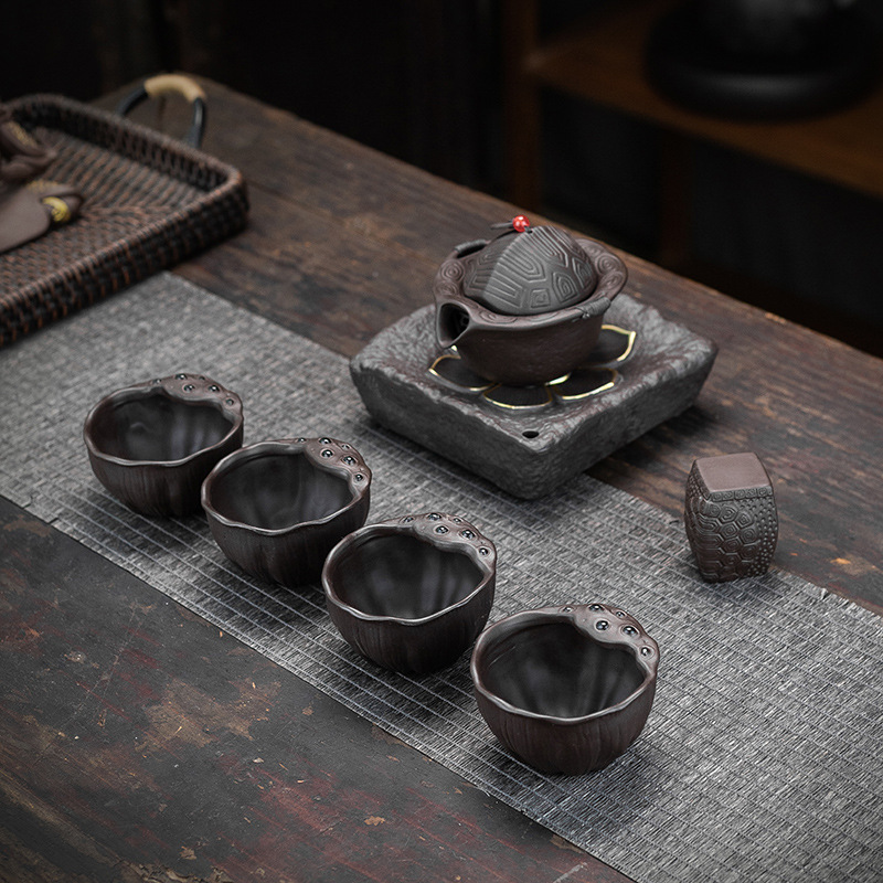 Фиолетовый песок Богатая Броня Одна боковая крышка Чайник Крышка Чаша Керамический горшок Крышка Держатель Чайный стол Украшения Кунг-фу Чай с золотой жабой Крышка Кронштейн