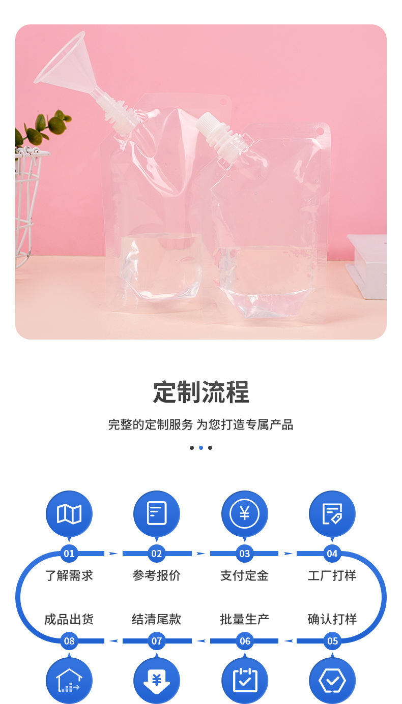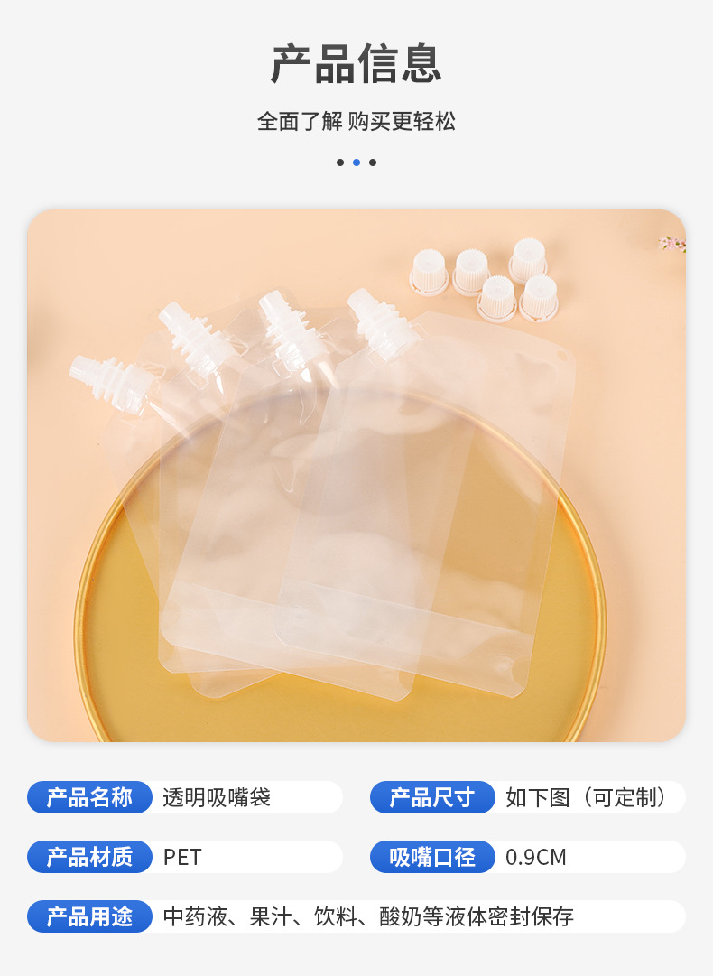 Фабрика в запасе Устранимый мешок упаковки соевого молока с ртом утечки самонесущий напиток сока молока прозрачный мешок всасывания сопла оптом