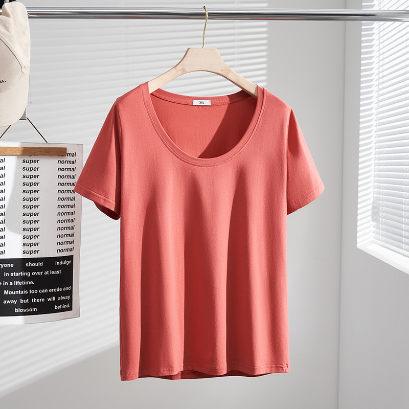 Летняя Однотонная футболка с U-образным вырезом и короткими рукавами, футболка больших размеров, пухлая девушка в Корейском стиле, очень толстая S5204