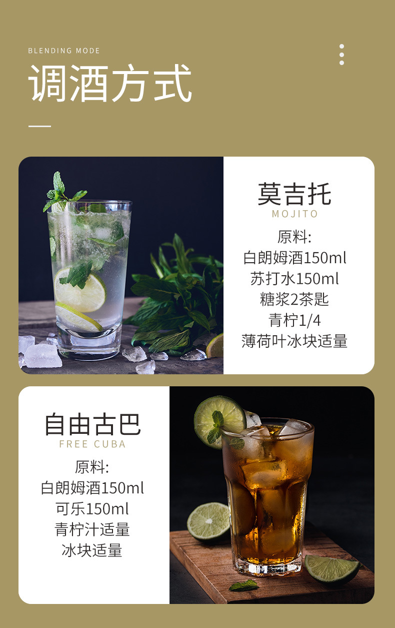 Вино ром Выпечка Белый ром Модуляция Мохито Миксер для коктейлей База Вино Full Box