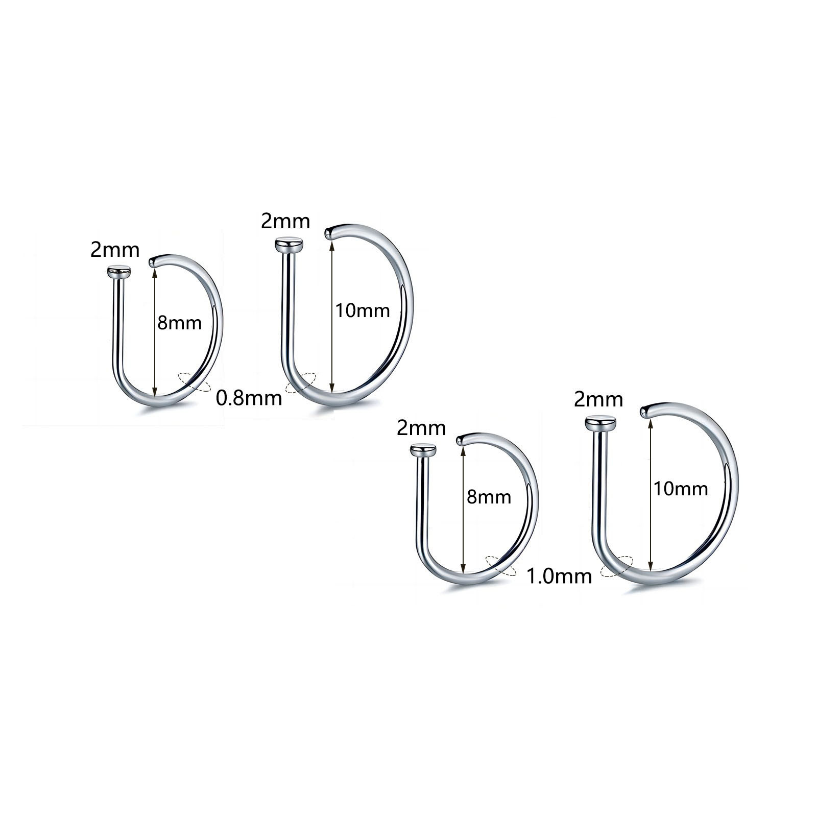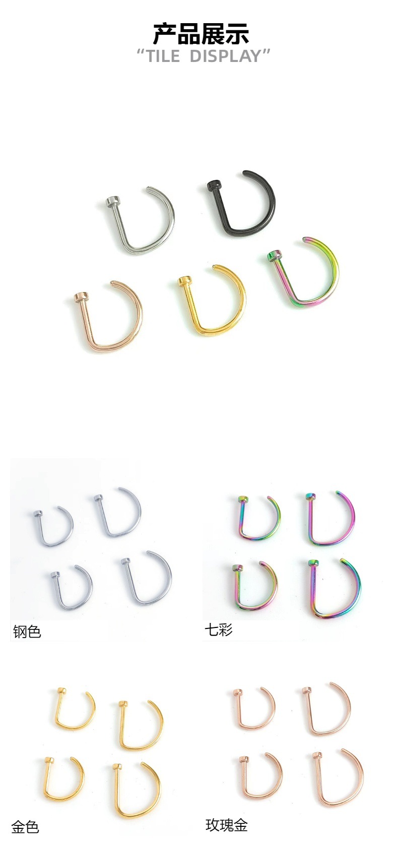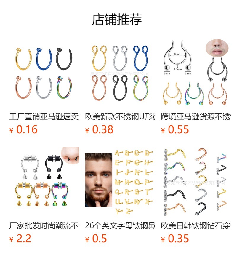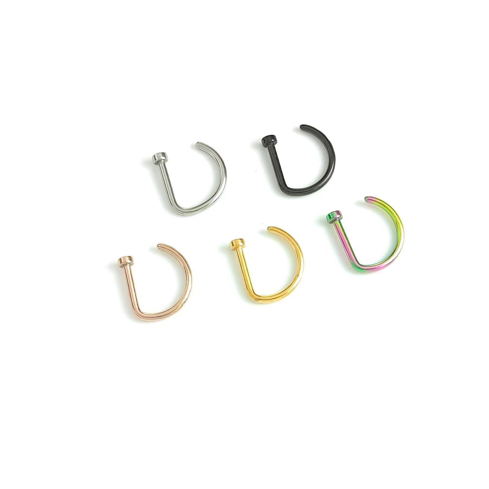 Популярный трансграничный товар: титановый стальной D-образный пирсинг для носа 0.8/1.0, имитация D-образного кольца для носа из нержавеющей стали, европейские и американские украшения для носа, оптовая продажа пирсинга.
