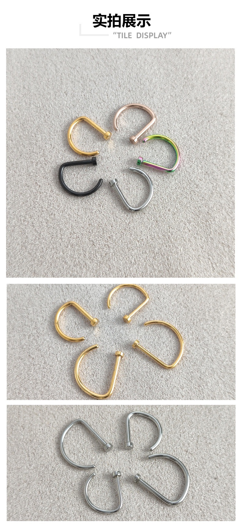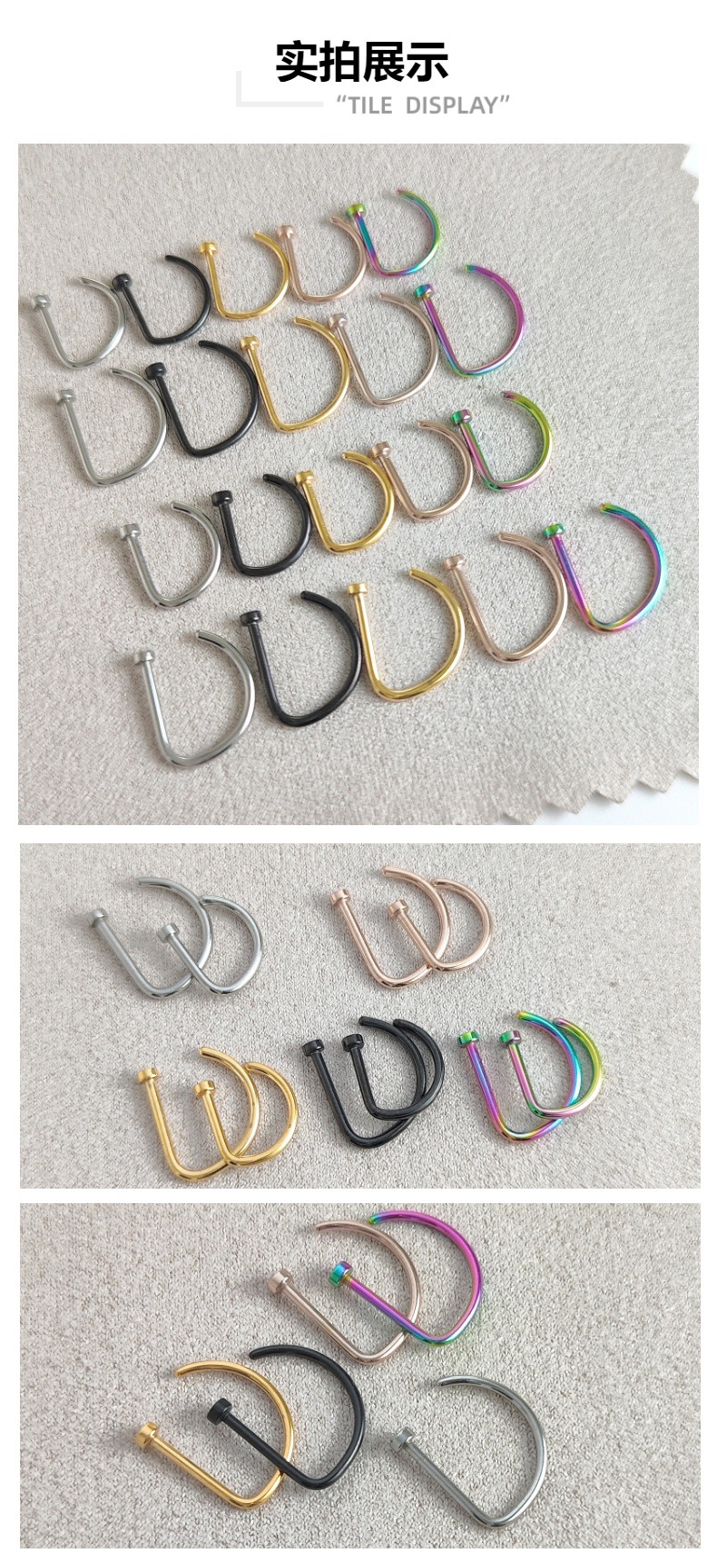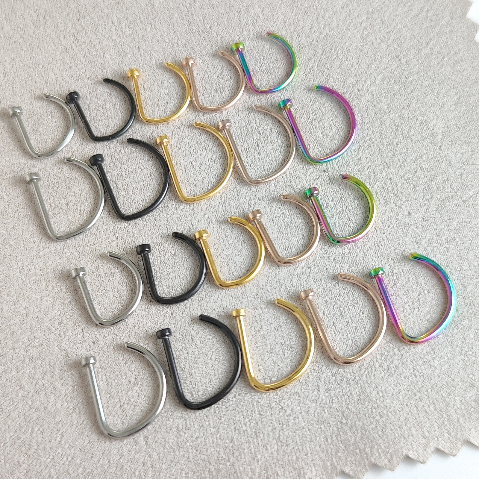 Популярный трансграничный товар: титановый стальной D-образный пирсинг для носа 0.8/1.0, имитация D-образного кольца для носа из нержавеющей стали, европейские и американские украшения для носа, оптовая продажа пирсинга.
