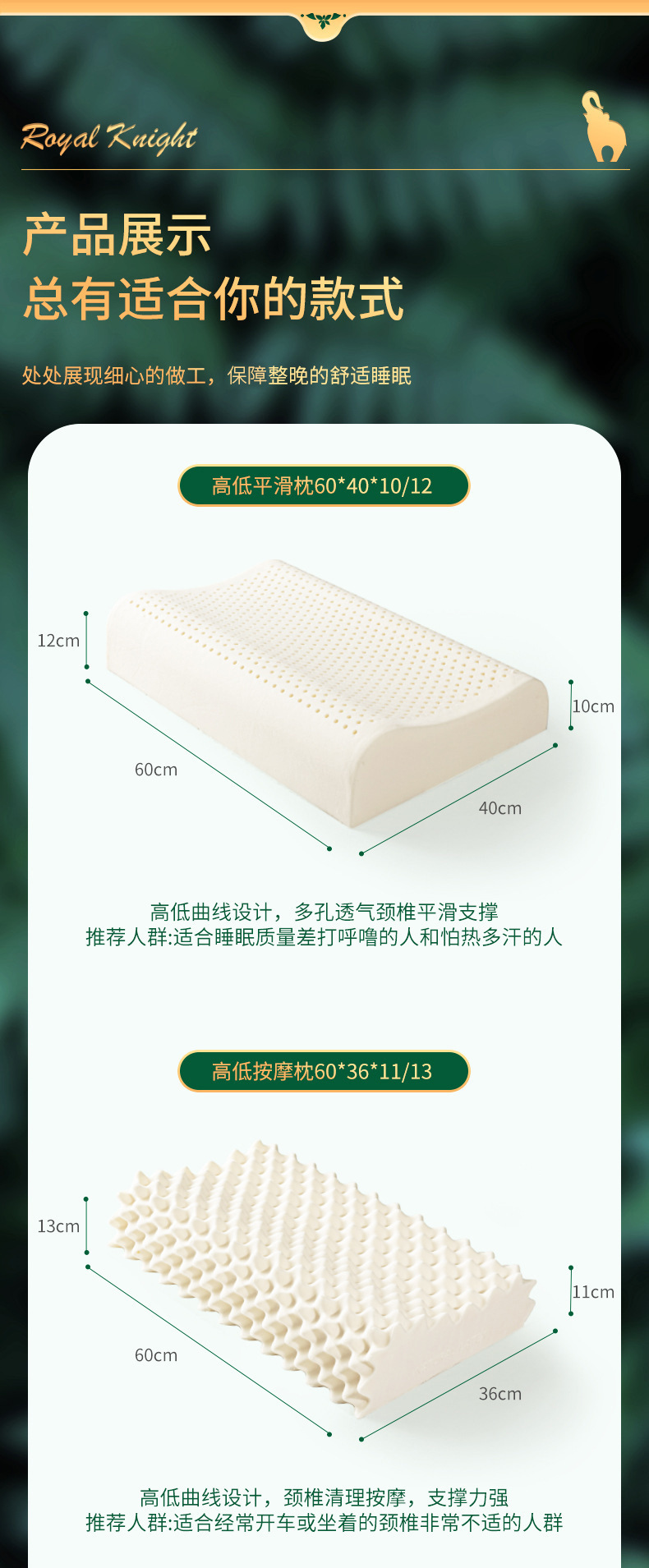 Подушка для массажа высокая и низкая 60*37*11/13; Подушка высокая и низкая гладкая 60*40*10/12; Женская массажная подушка 57*37*10; Женская разглаживающая подушка 57*37*10; Студенческая подушка 50*30*7/9; Подушка детская 44*27*5; Низкая гладкая подушка 60*40*8/10