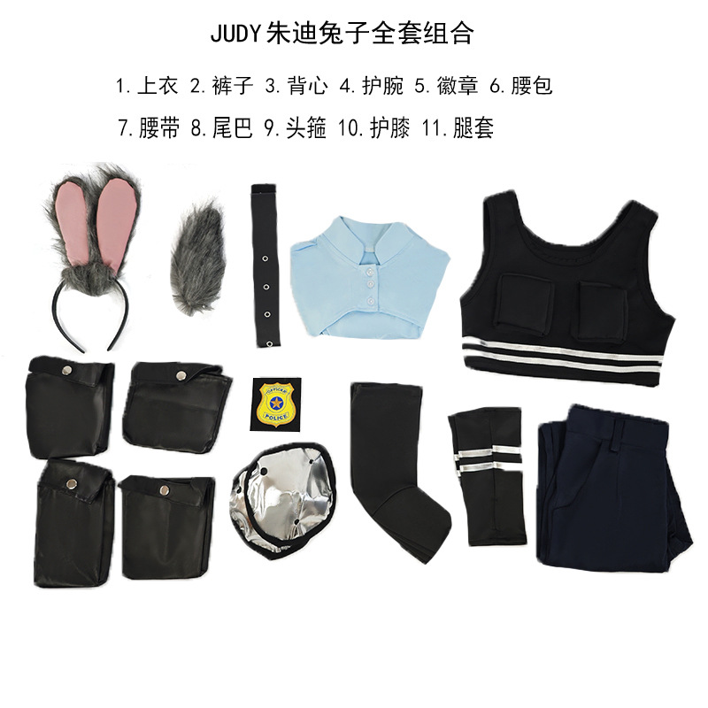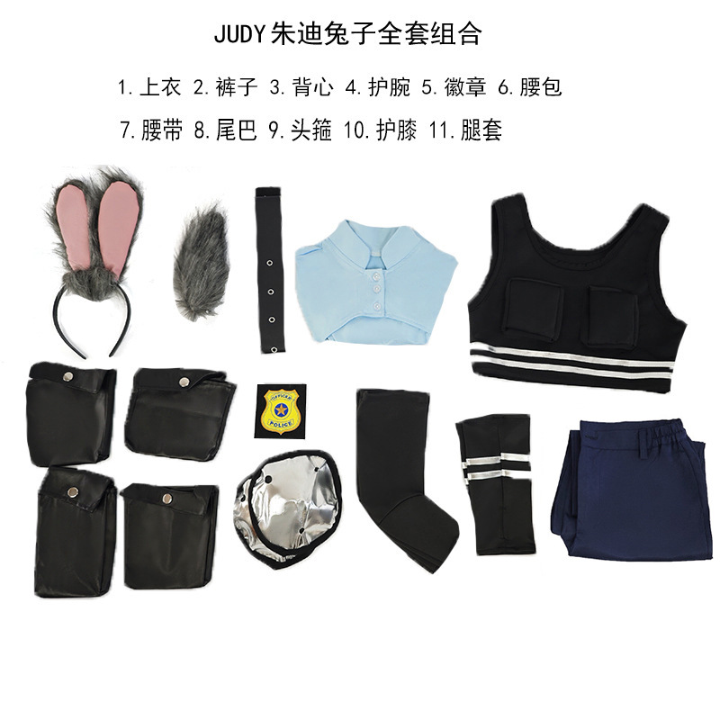 Костюм на Хэллоуин: кролик-полицейский Джуди из Зоотопии, косплей для комикс-конвеншн, аниме-выступлений, комплект