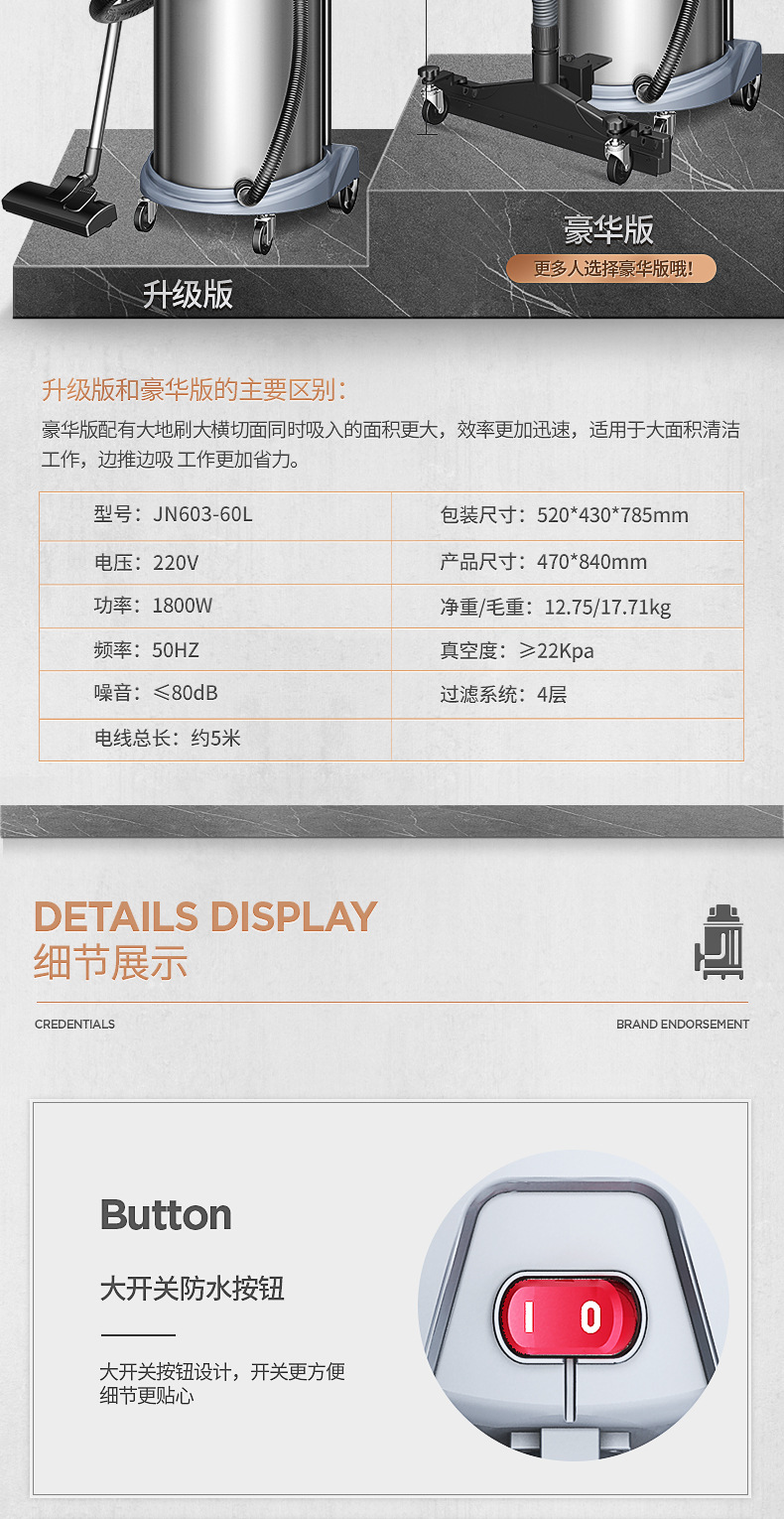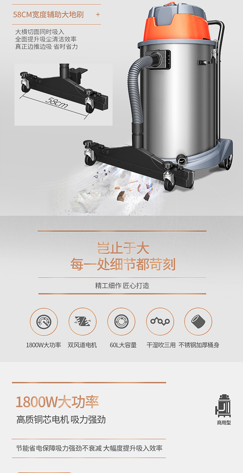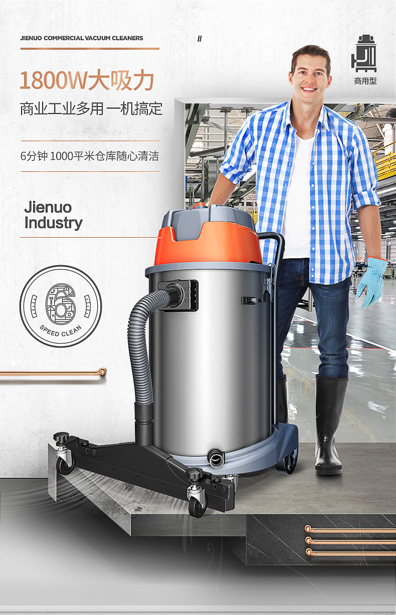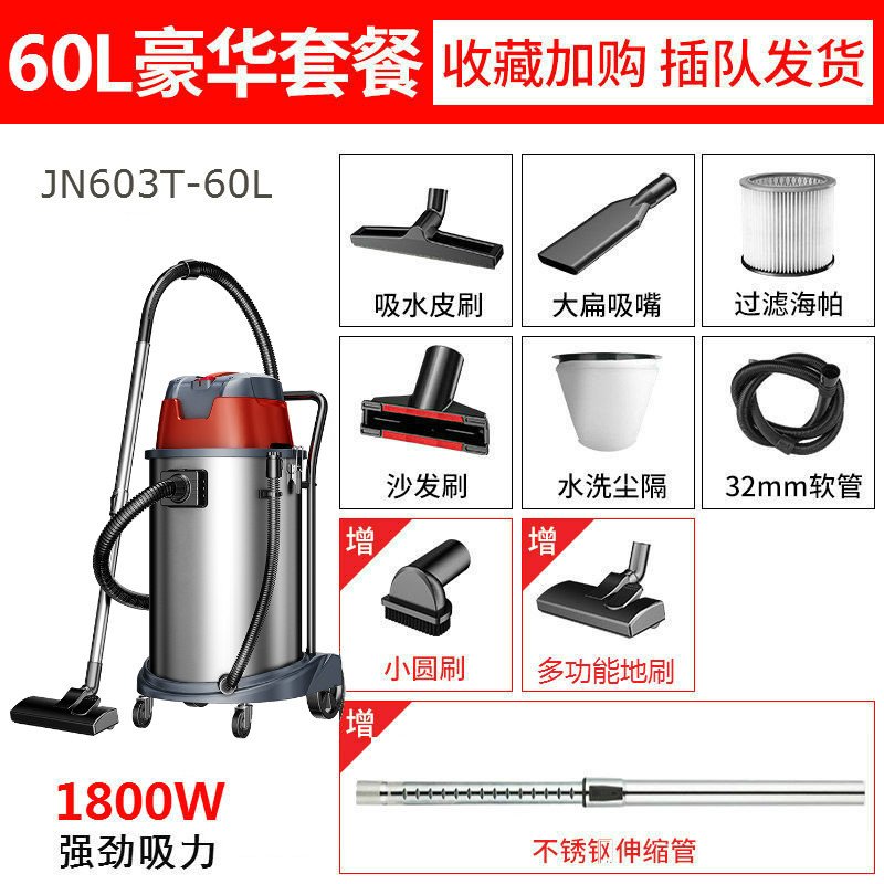 Geno Vacuum Cleaner JN603T-60L1800W Мощный коммерческий цех сухой и влажной выдувки по очистке и удалению пыли