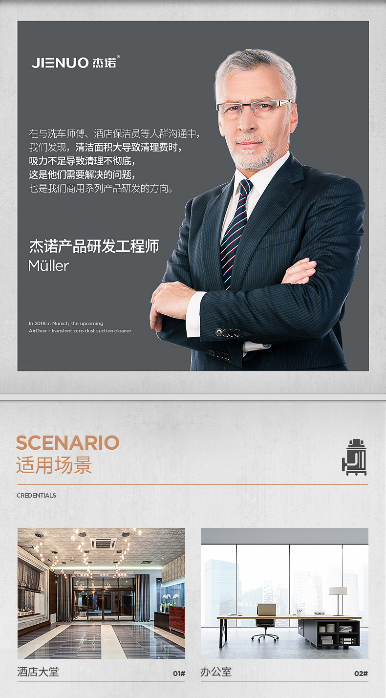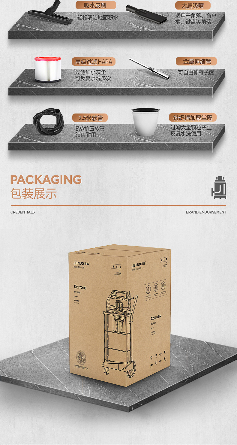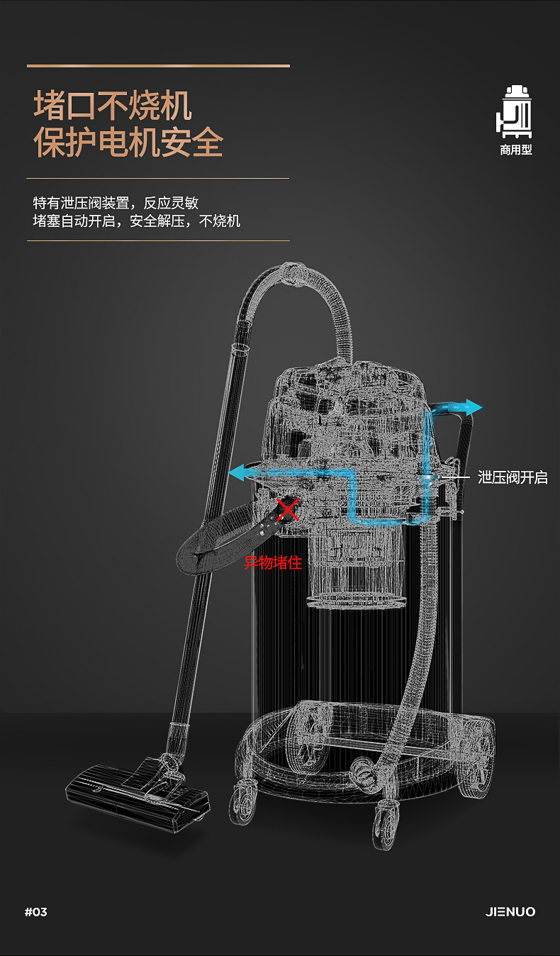 Geno Vacuum Cleaner JN603T-60L1800W Мощный коммерческий цех сухой и влажной выдувки по очистке и удалению пыли