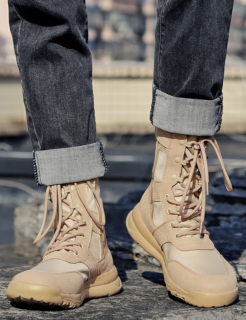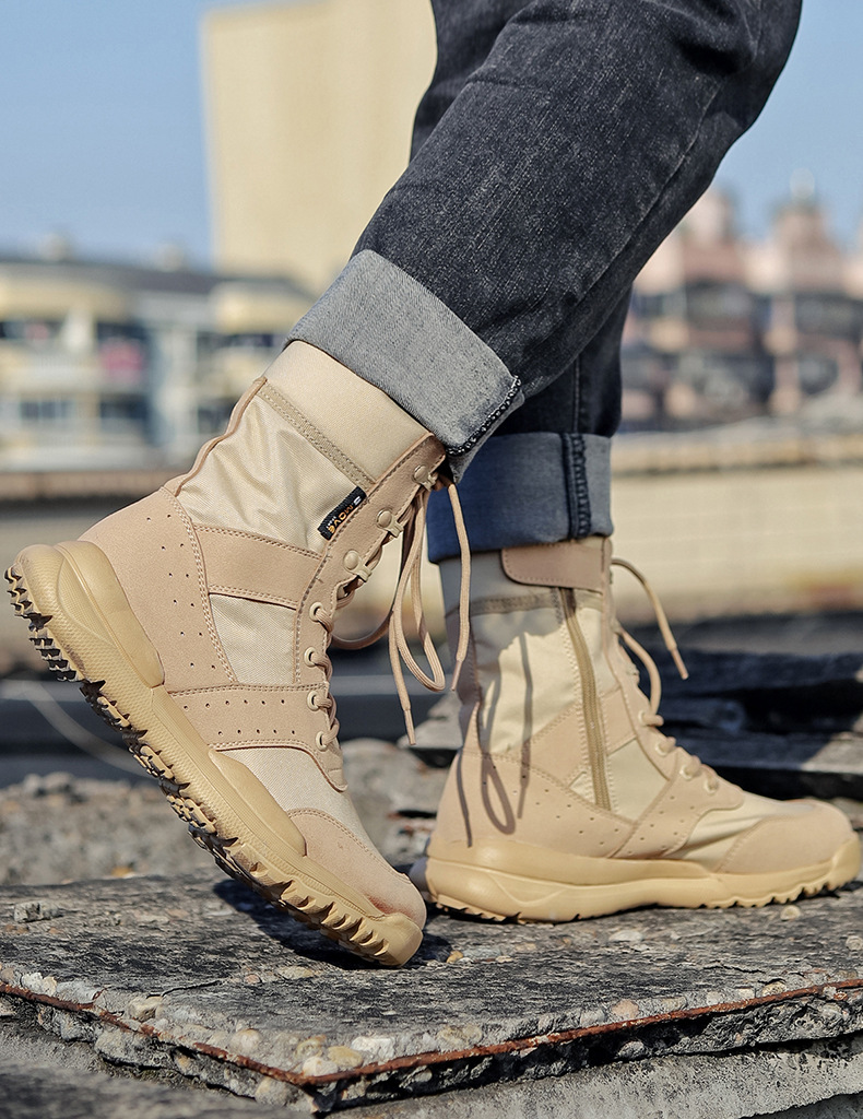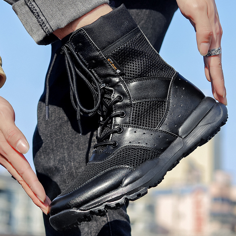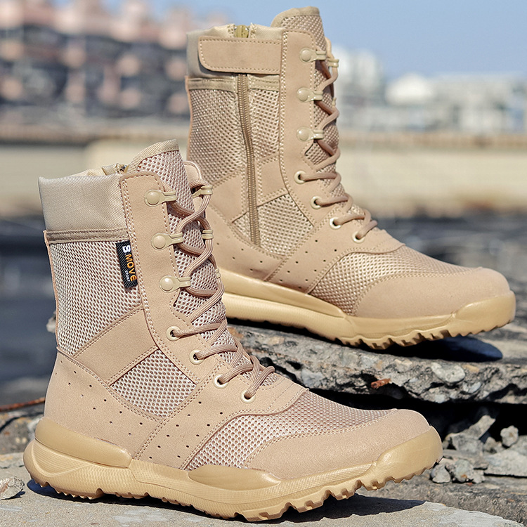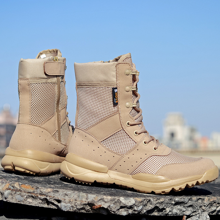Прямые поставки с фабрики, летние мужские дышащие армейские ботинки, высокие тактические ботинки для пустыни, боковая молния, женские уличные ботинки, поколение волос