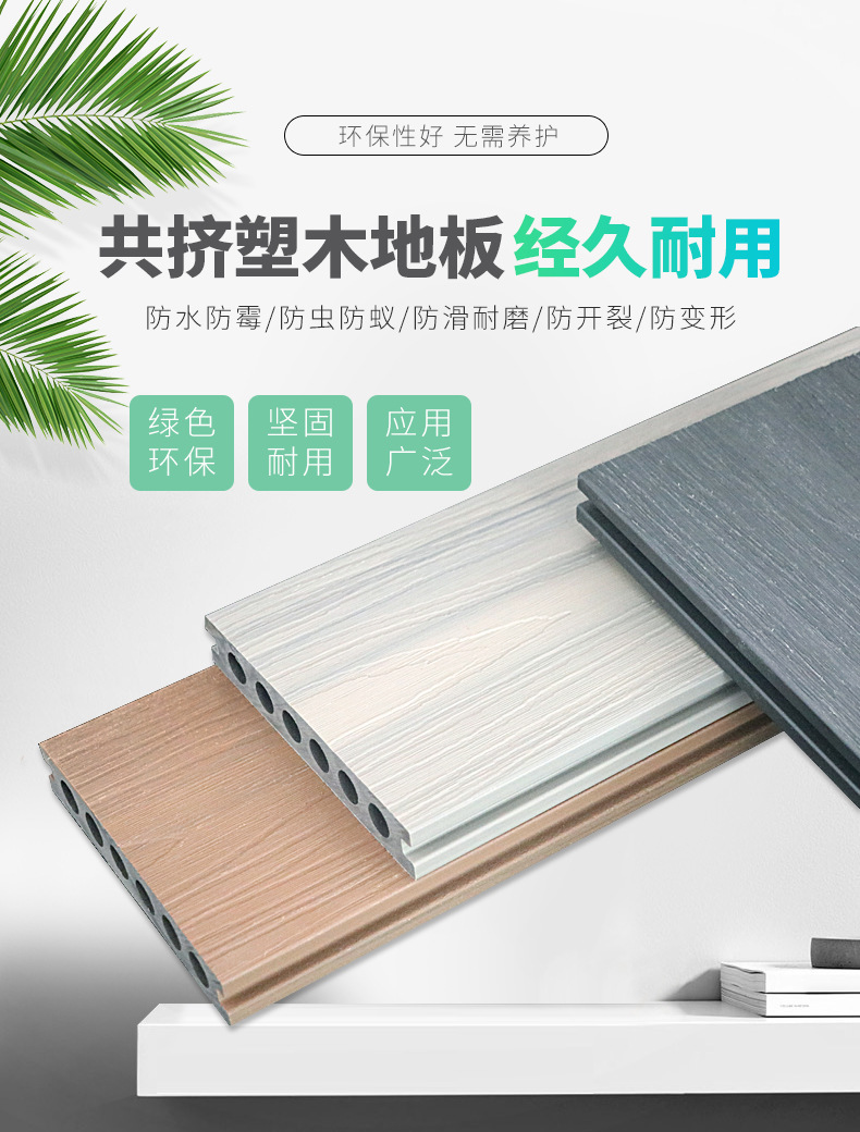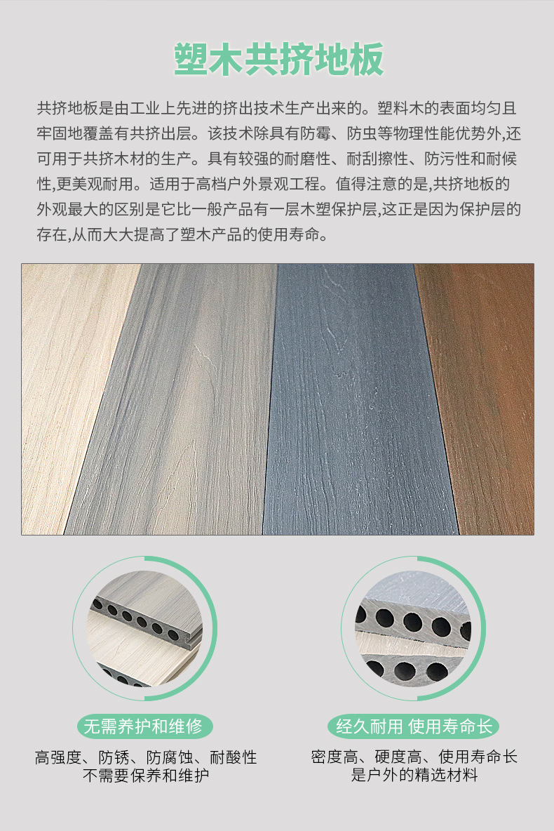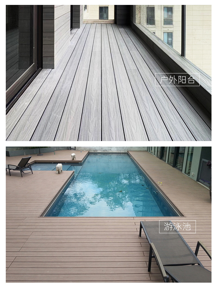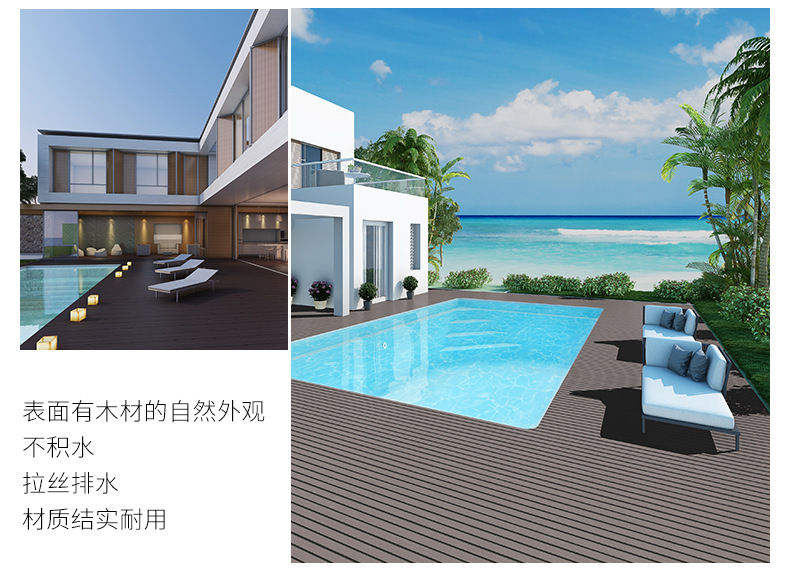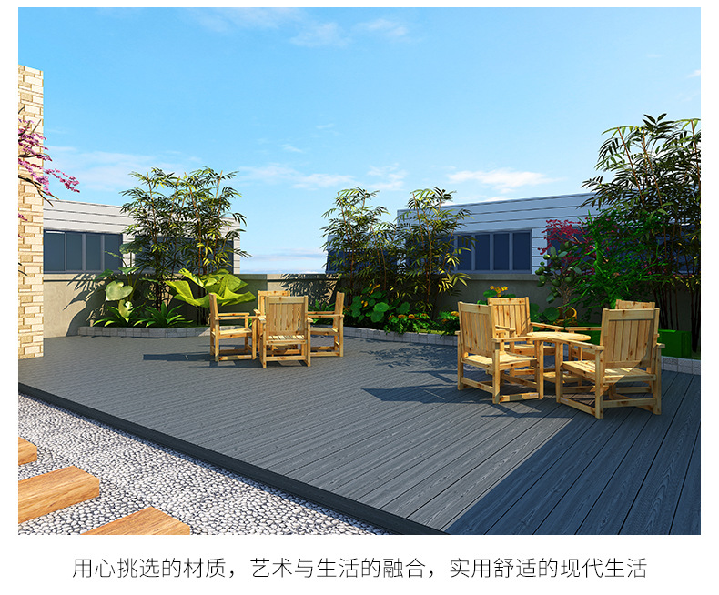 Двухслойное древесно-полимерное напольное покрытие второго поколения для наружного и внутреннего применения в дворах, коридорах, садах и на террасах, водонепроницаемое, антикоррозийное, влагостойкое и защищающее от насекомых.