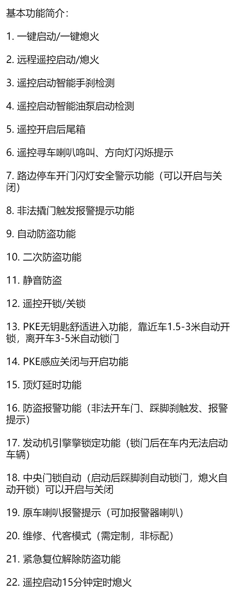 Дистанционный Запуск дистанционного управления, запуск одним щелчком мыши, Интеллектуальная Индукционная разблокировка PKE и закрытие замка