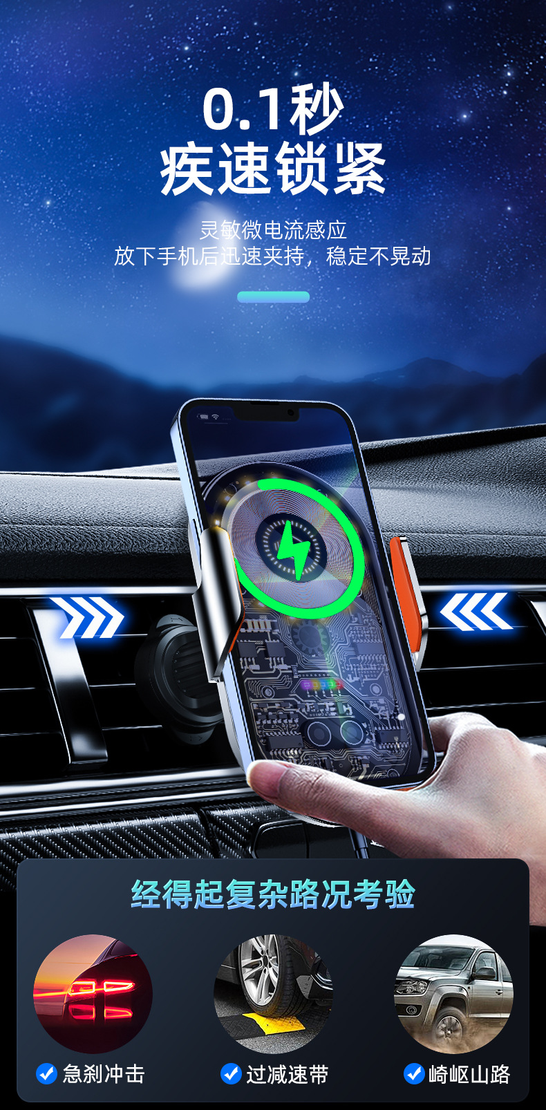 Трансграничный взрыв автомобильный беспроводной зарядка Кронштейн для мобильного телефона автомобильная навигация воздуховыпускная рамка 15 Вт Быстрая зарядка Автомобильная опорная рама