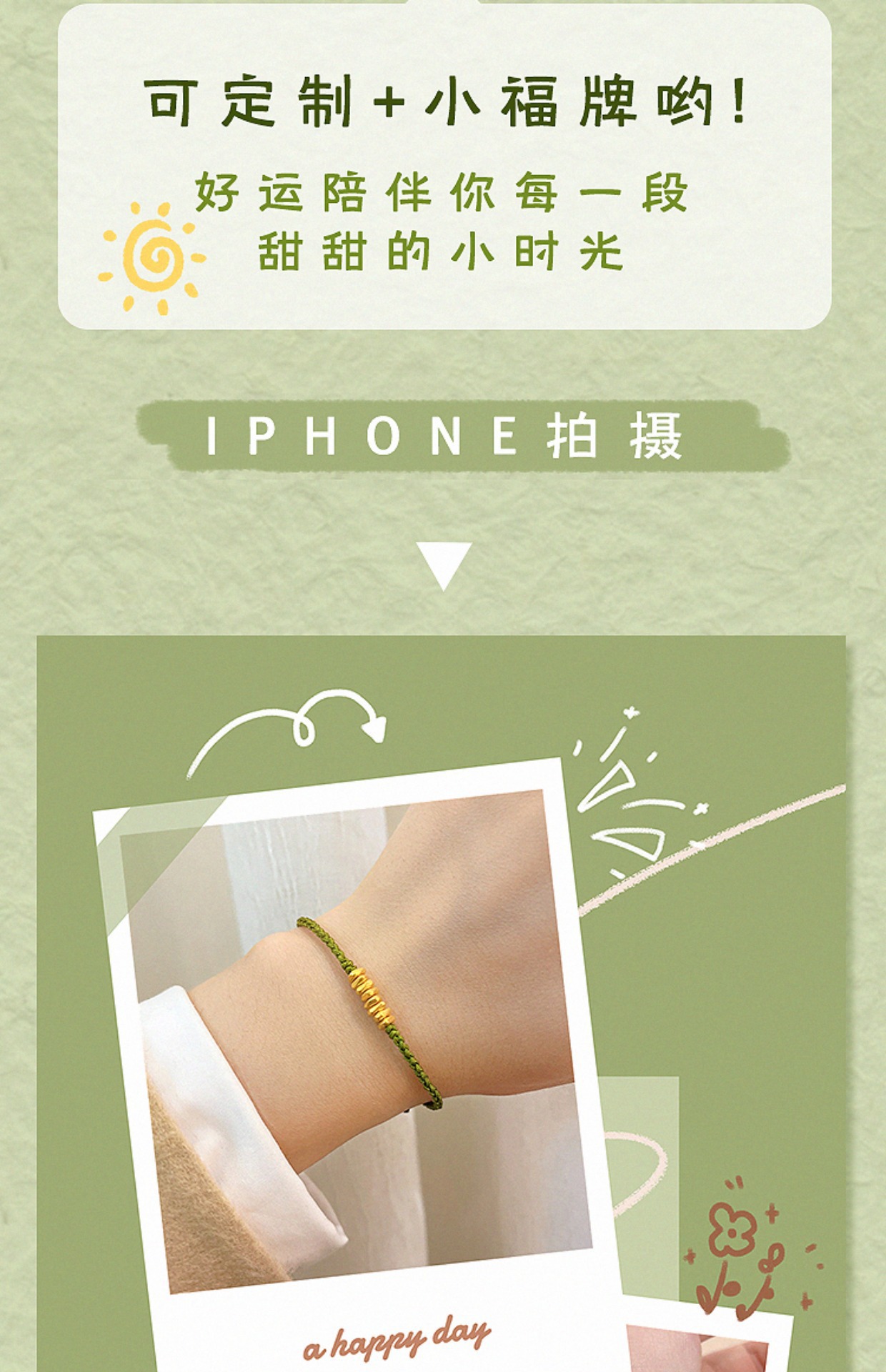 Браслет из золотых шариков 24 карата, 999 пробы, из чистого золота, маленькие золотые бусины, золотой браслет на нити для женщин, подарок на день рождения