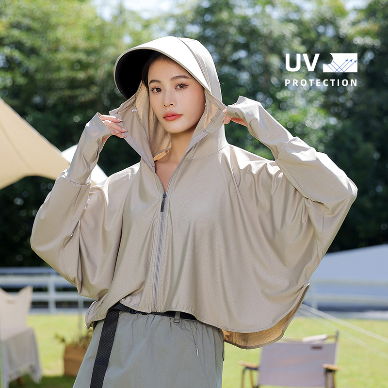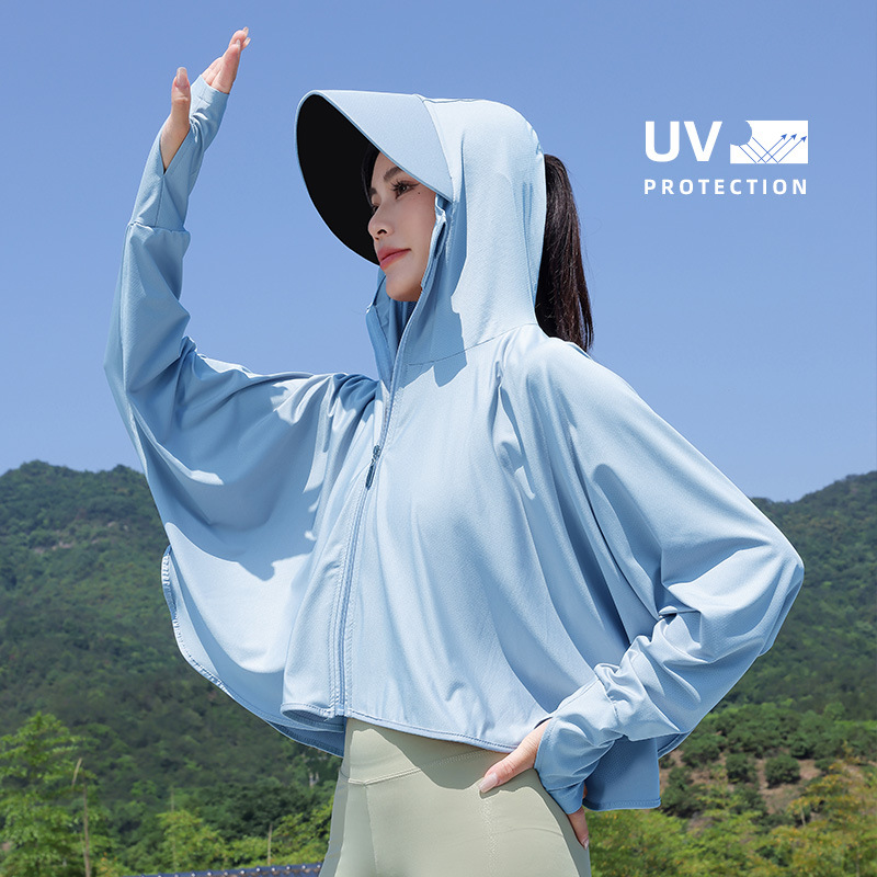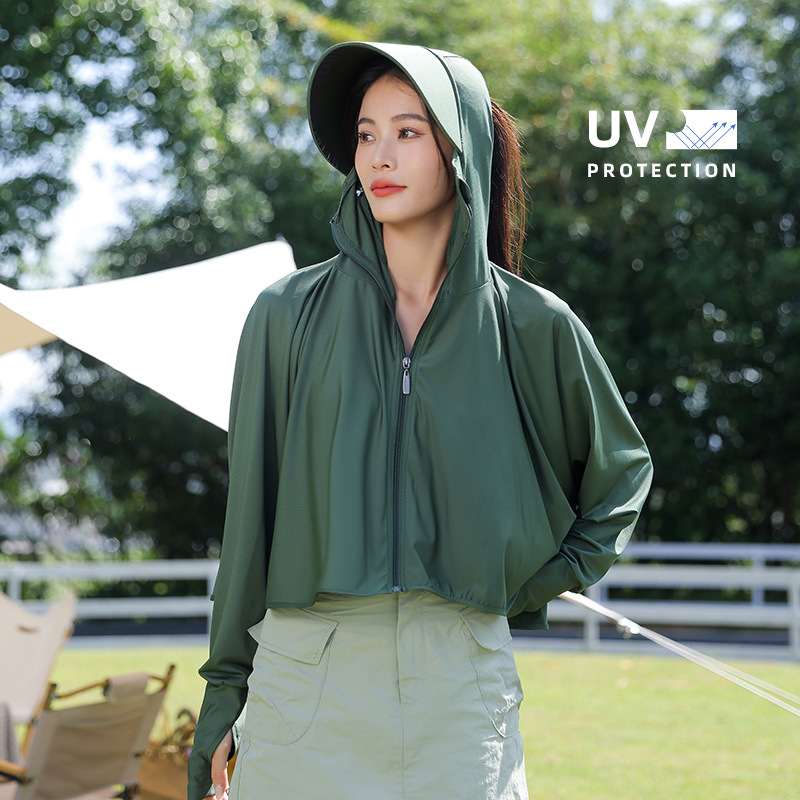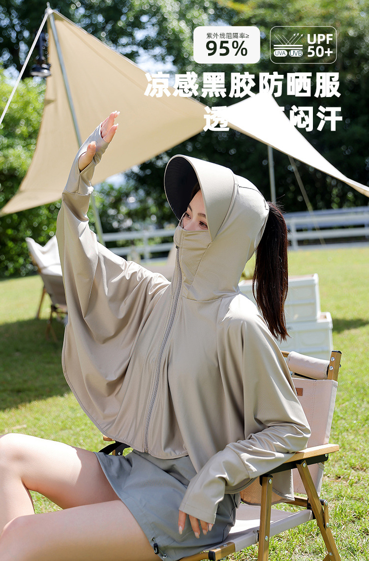 Плюс Размер Ice Silk Солнцезащитная одежда для женщин Летняя черная резиновая одежда с большими полями Защита от ультрафиолета Велоспорт на открытом воздухе тонкая дышащая Солнцезащитная одежда