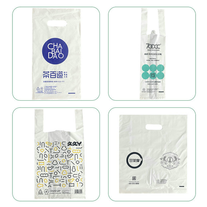 Полностью биодеградабле пластиковая сумка сумки упаковки плода напитка чая молока покупок супермаркета сумки жилета на вынос портативная упаковывая