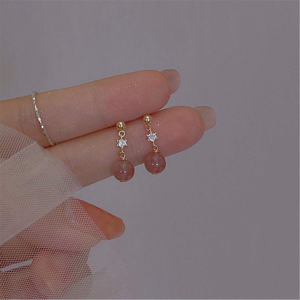 Красивые плакающие серьги с натуральными розовыми кристаллами Клубничные серьги с покрытием из 14-каратного золота Новая нишевая простая серебряная игла 925 пробы для женщин