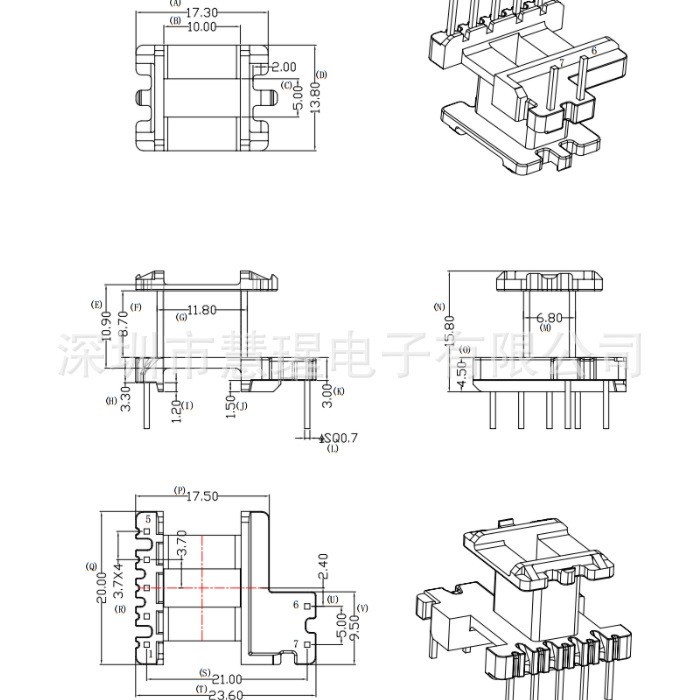 EE1910高频变压器骨架加宽立式2+5针HXB-EI1908-1 排距21mm