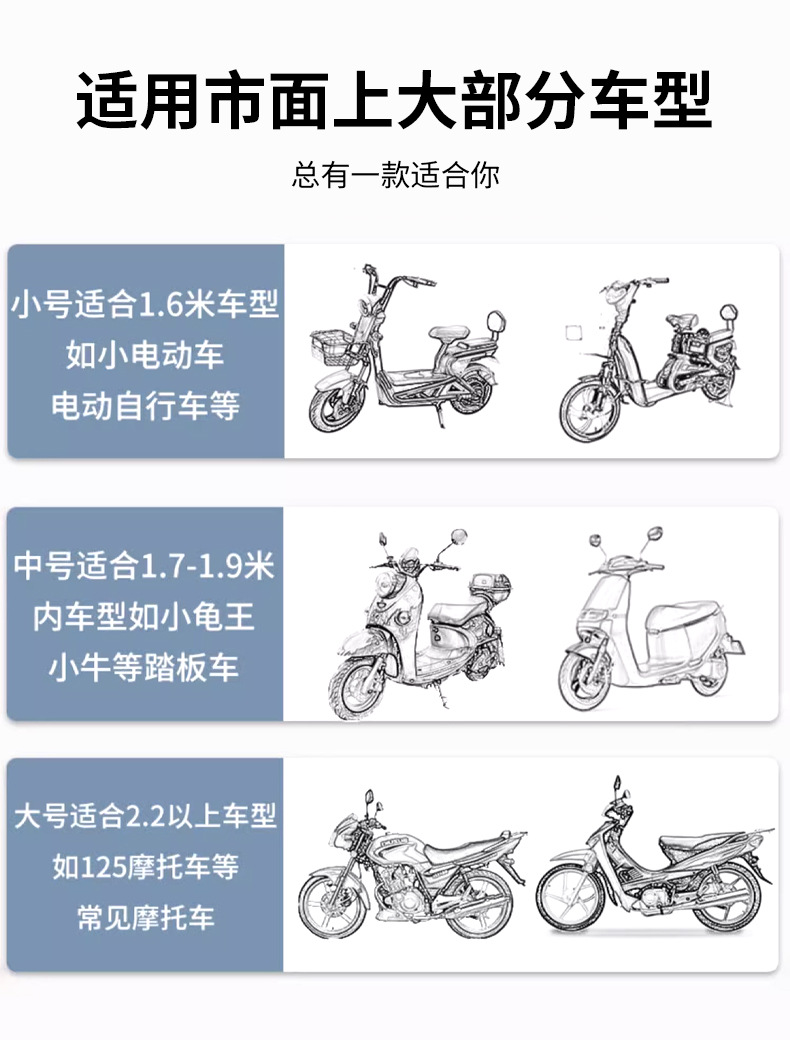 XL大号 (适合2.2米以上车型 如125摩托车等 常见摩托车)