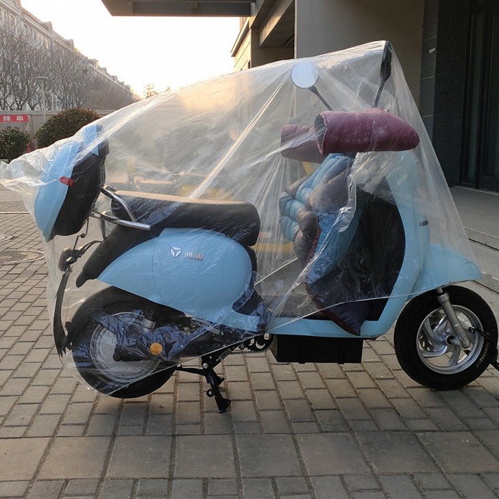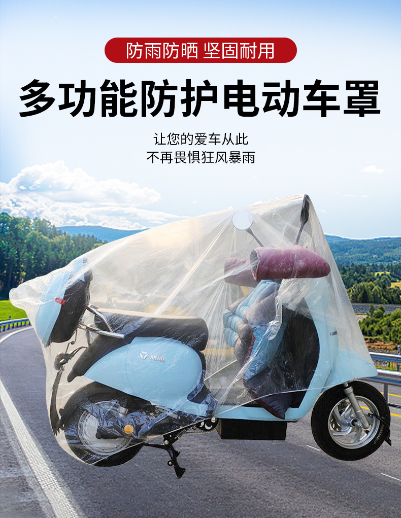 电动车车衣是由PEVA材料制作而成。主要用来防尘,防污染,防雨雪霜降。携带方便,以及高污染环境中的车辆存放等