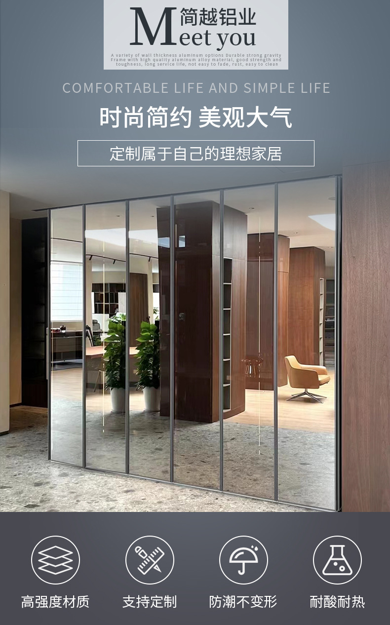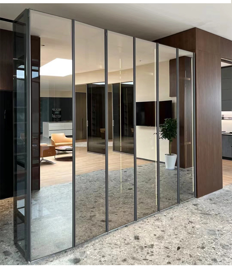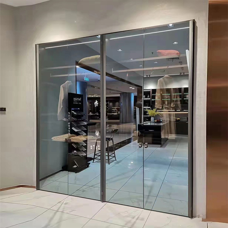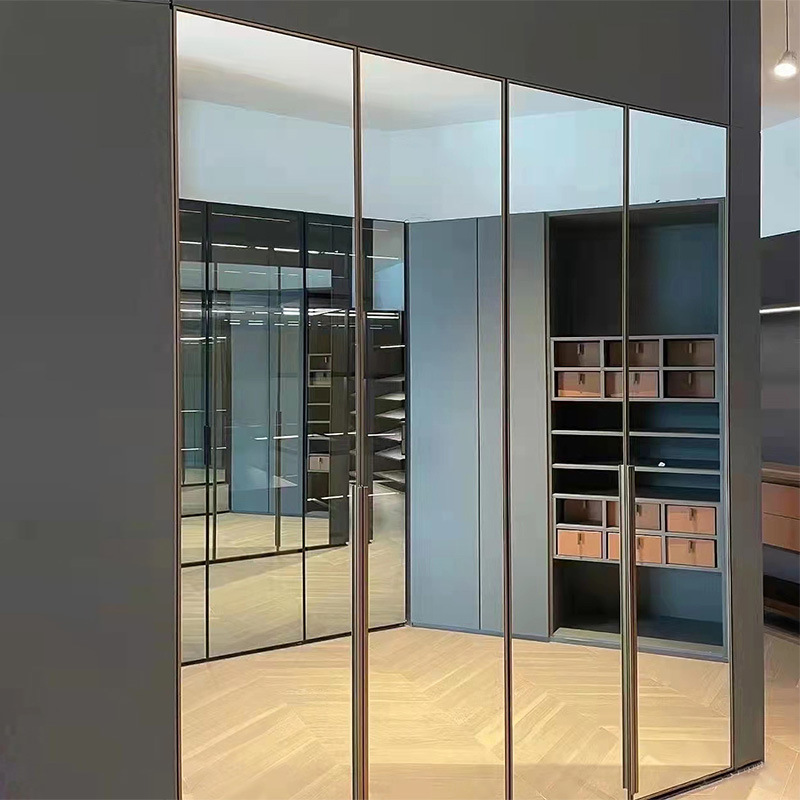 Минималистское стекло с покрытием Дверное зеркало Закаленное стекло Дверь шкафа из алюминиевого сплава Узкая граница Дверь винного шкафа Дверь шкафа Настройка