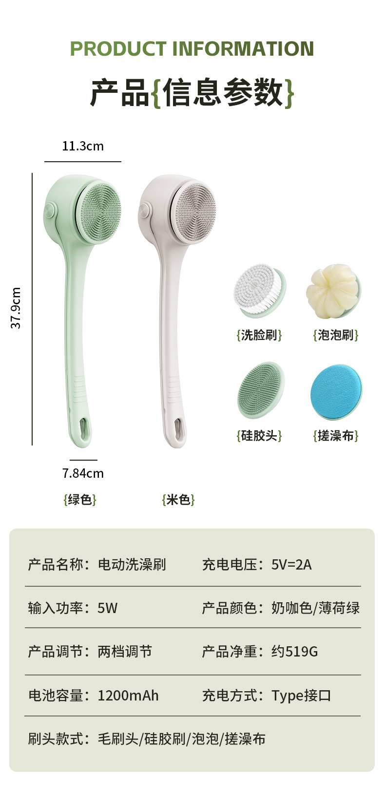 Одна ручка молочно-белого цвета + 6 насадок.; Одна ручка желтого цвета + 6 насадок.; Одна ручка светло-зеленого цвета + 6 насадок.; Двойная ручка мятно-зеленая + 4 насадки.; Двойная ручка цвета молочного кофе + 4 насадки для щетки.