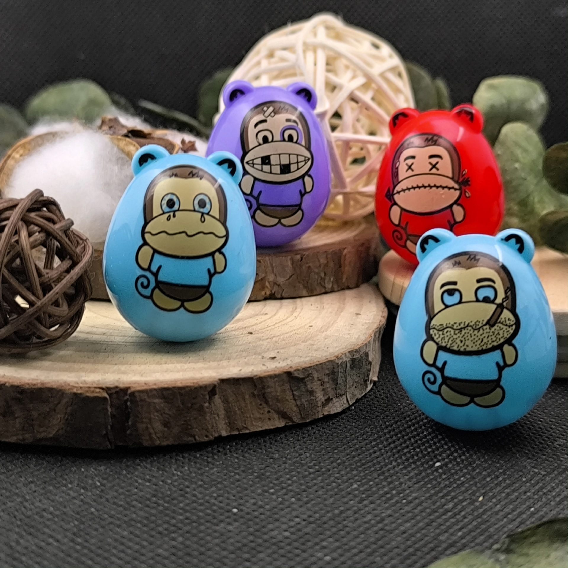 Разнообразие смешанных (более скрытых); Озорная обезьяна; Детские; Медведь; Динозавры; Цыпленок; Бог богатства; Сова; Кошка; Санта Клаус