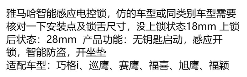 Qiaoge i-sensor электрический замок с двойным дистанционным управлением; Индукционный Электрический замок с двойным дистанционным управлением Husi; Патруль Eagle Индукционный двойной пульт дистанционного управления Электрический замок управления; Индукционный Электрический замок с двойным дистанционным управлением Saiying GT; Индукционный Электрический замок xuying с двойным дистанционным управлением; Двойной индукционный замок с дистанционным управлением Fuying; Отверстие открывалка