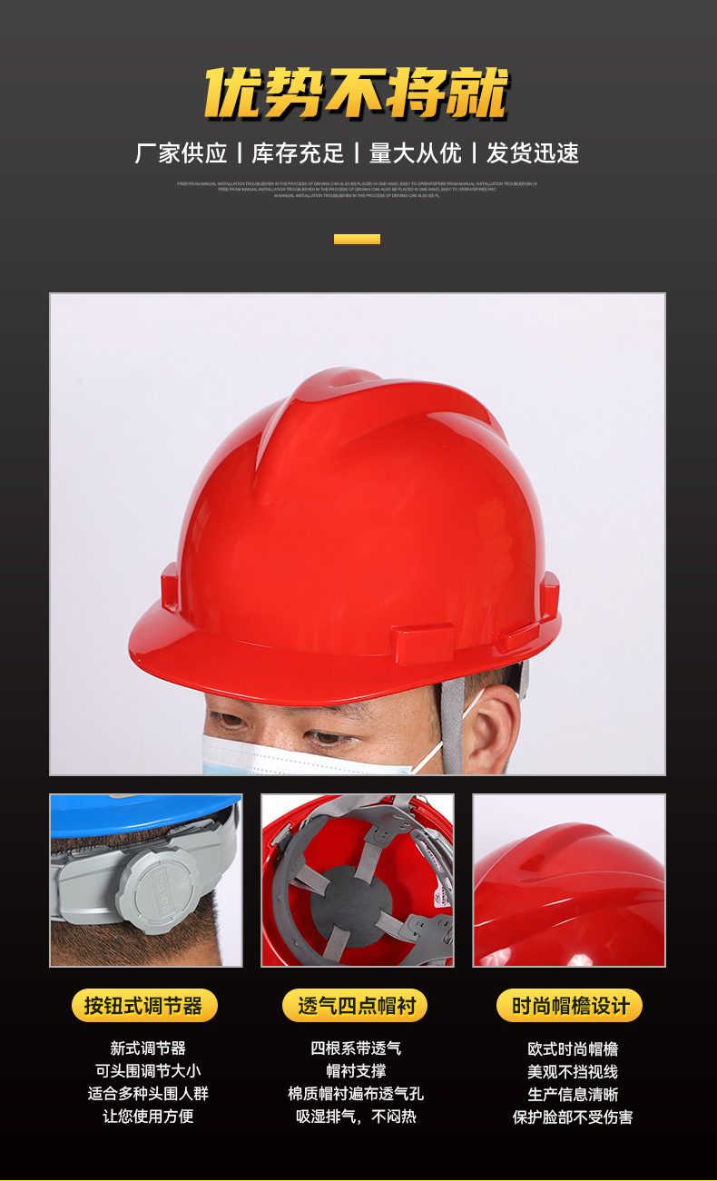 Защитный шлем HDPE в наличии Оптовая продажа V-образный утолщенный защитный шлем для строительной площадки GB Строительная дышащая Строительная шляпа с защитой от ударов