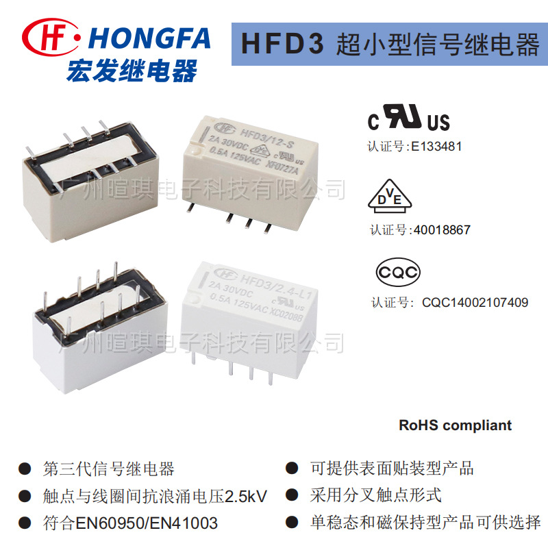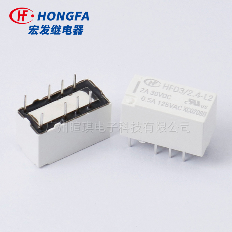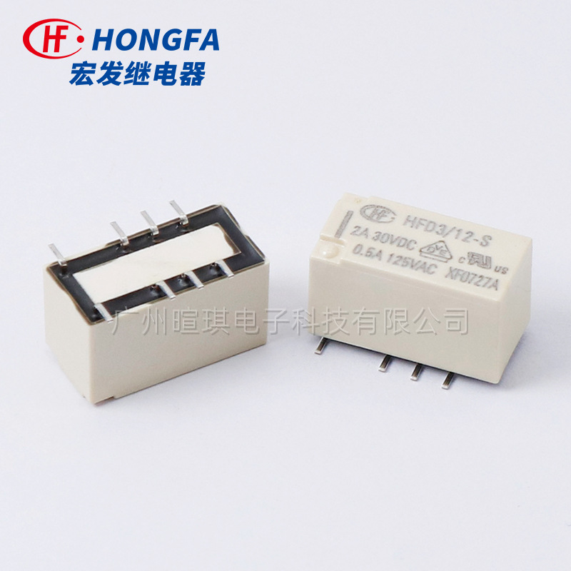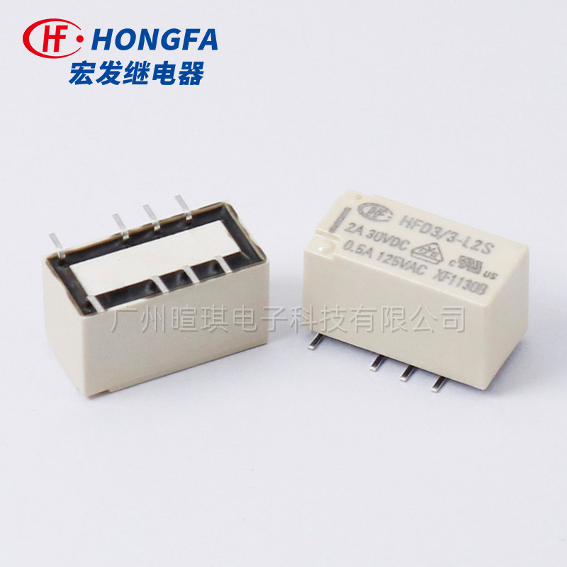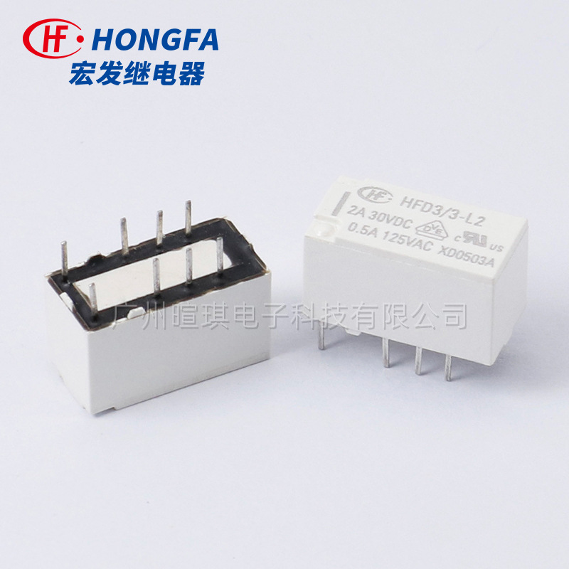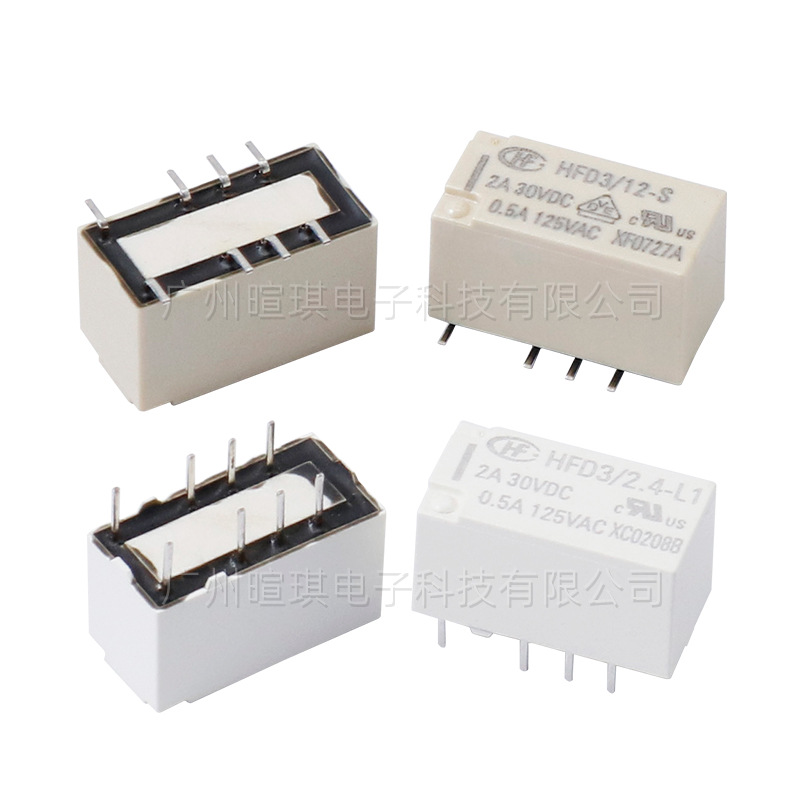 Реле Hongfa HFD3/3-L2S, 8-контактное, магнитное, с фиксацией, SMD, 12В 2А, малогабаритное сигнальное реле