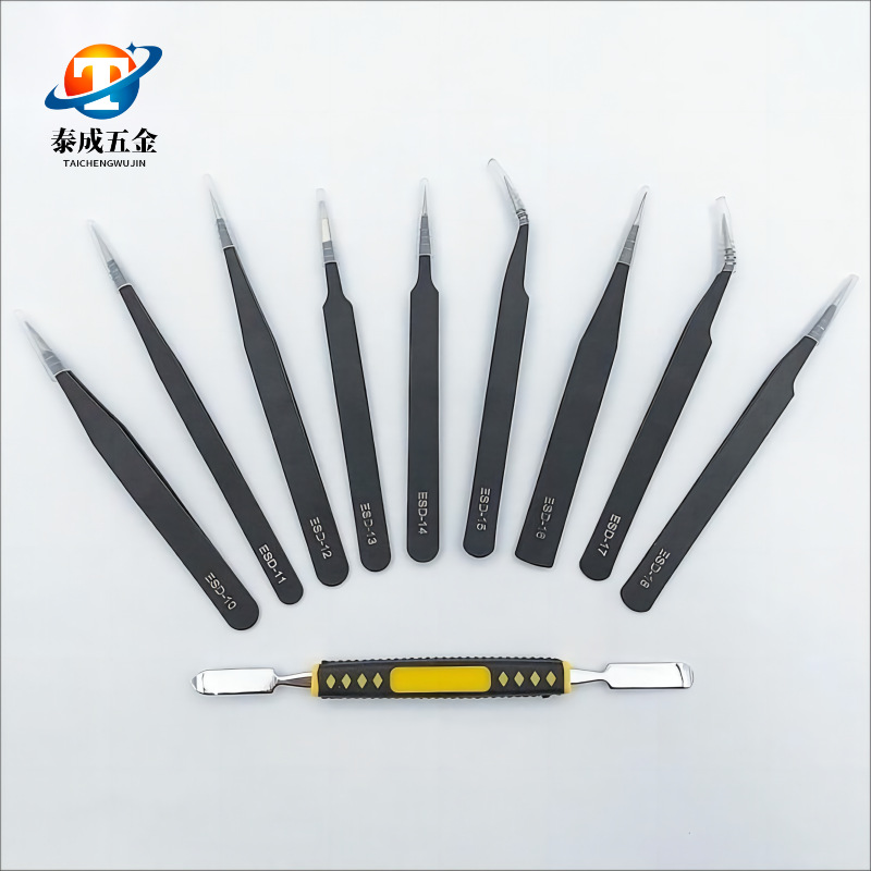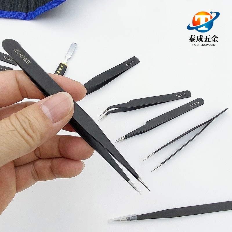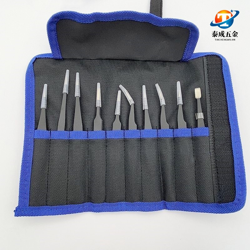 Пинцет из нержавеющей стали, Холщовый пакет, набор из 10 предметов, пинцет с антимагнитной окантовкой, 9 предметов из нержавеющей стали, острый прямой локоть ESD