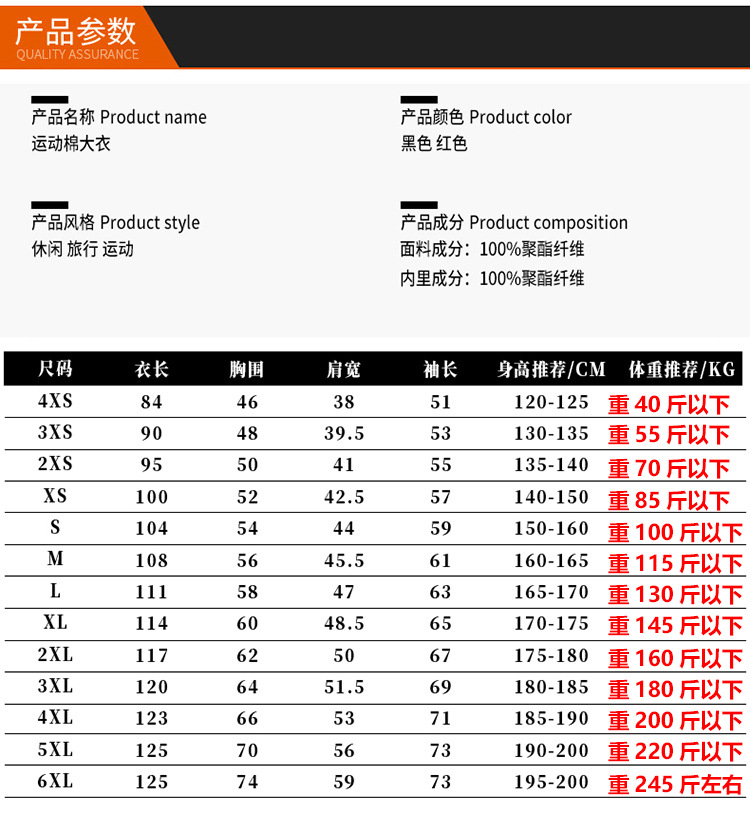 4XS вес до 45 кг; 3XS вес до 55 кг; 2XS Вес 70 Джин; XS вес до 85 кг; Вес с чем 100 Джин; Вес M менее 115 Jin; L вес менее 130 Цзинь; XL вес менее 145 Цзинь; 2XL весит менее 160 Цзинь; 3XL вес менее 180 Jin; 4XL менее 200 Цзинь; 5XL менее 220 Цзинь; 6XL весит около 245 Цзинь