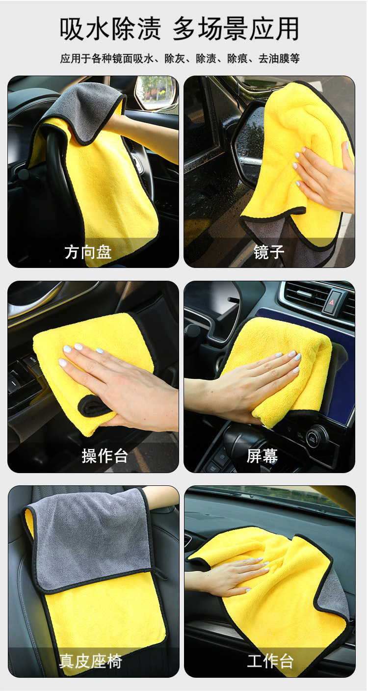 Полотенце для чистки автомобиля, двустороннее, утолщенное, из кораллового флиса, впитывающая салфетка для уборки, реклама о чистке, рыбалка, возможность нанесения логотипа.