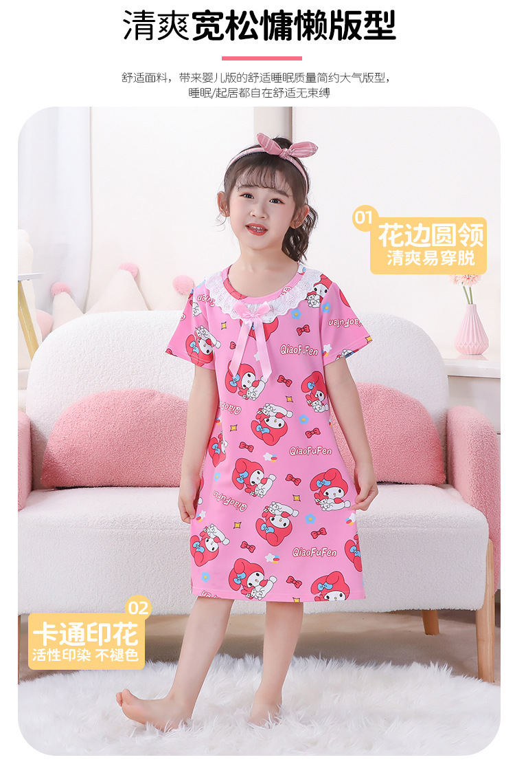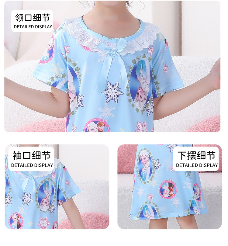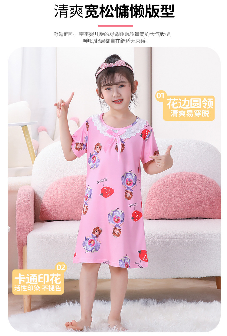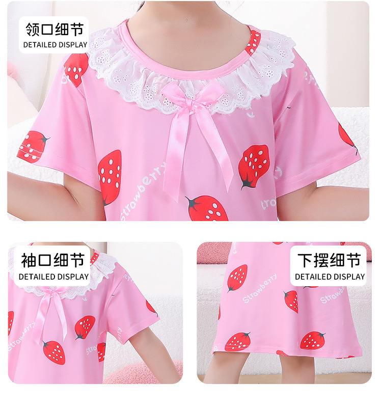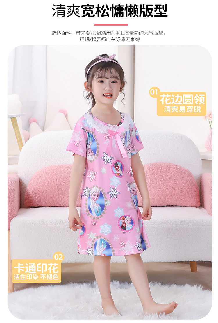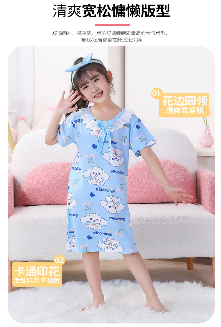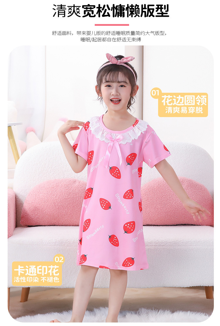 Летняя ночная рубашка для девочек с короткими рукавами, кружевная юбка с милым рисунком, цельная юбка для маленьких девочек, детская одежда, детская домашняя одежда среднего и большого размера